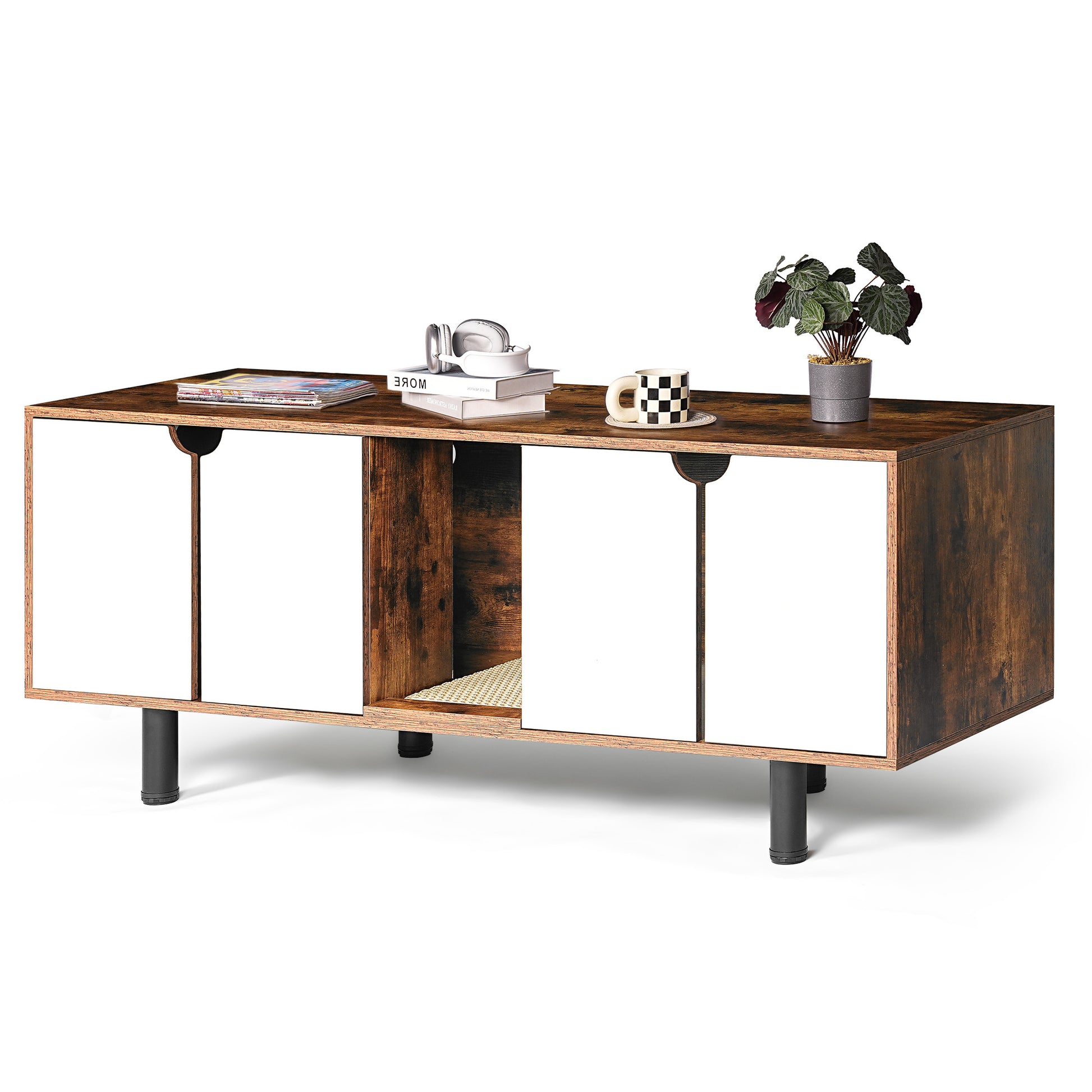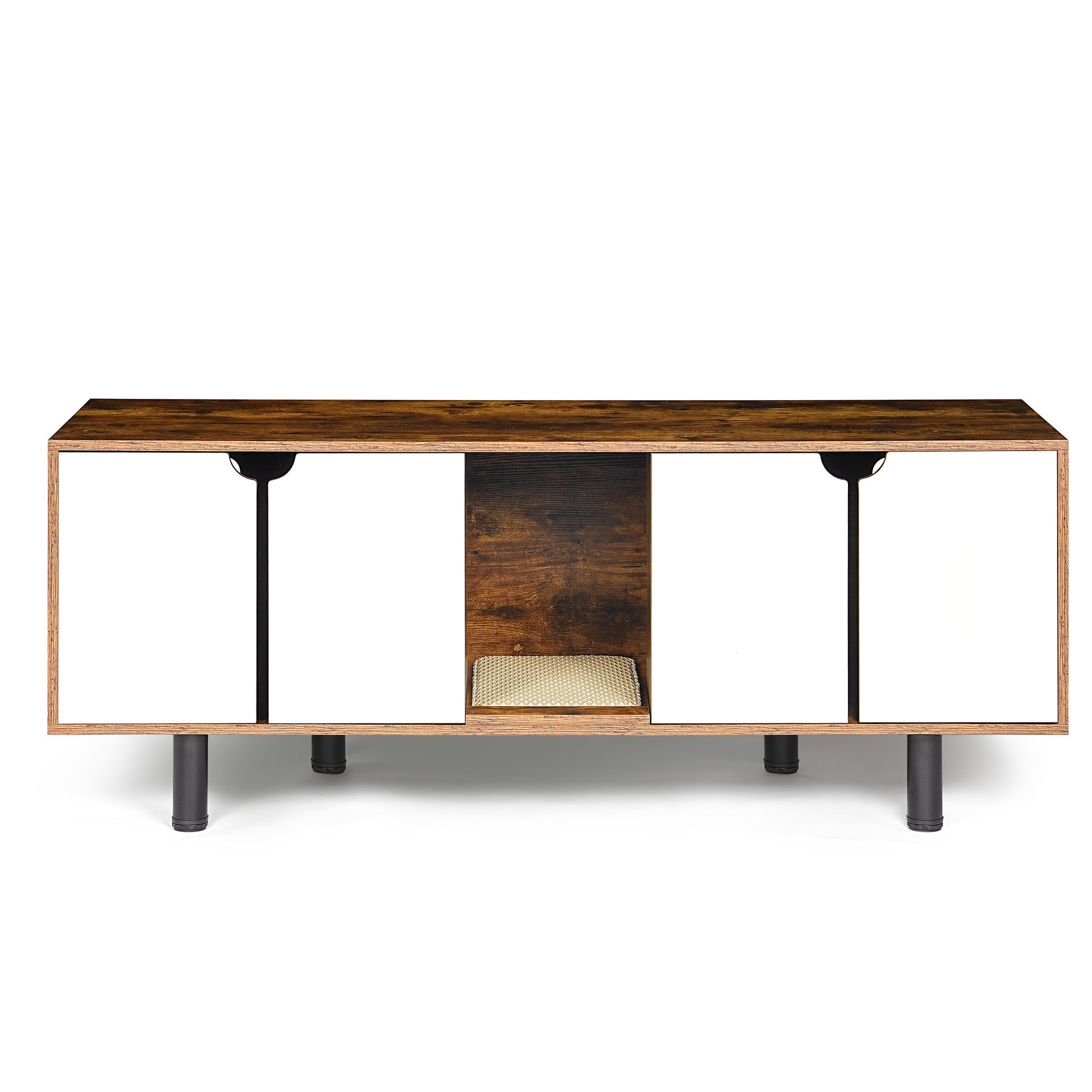 Cat Litter Box Enclosure For 2 Cats, Double Hidden Litter Box Furniture Large Cat Washroom, Indoor Cat House Cabinet Tv Stand End Table, White Vintage White Vintage Particle Board