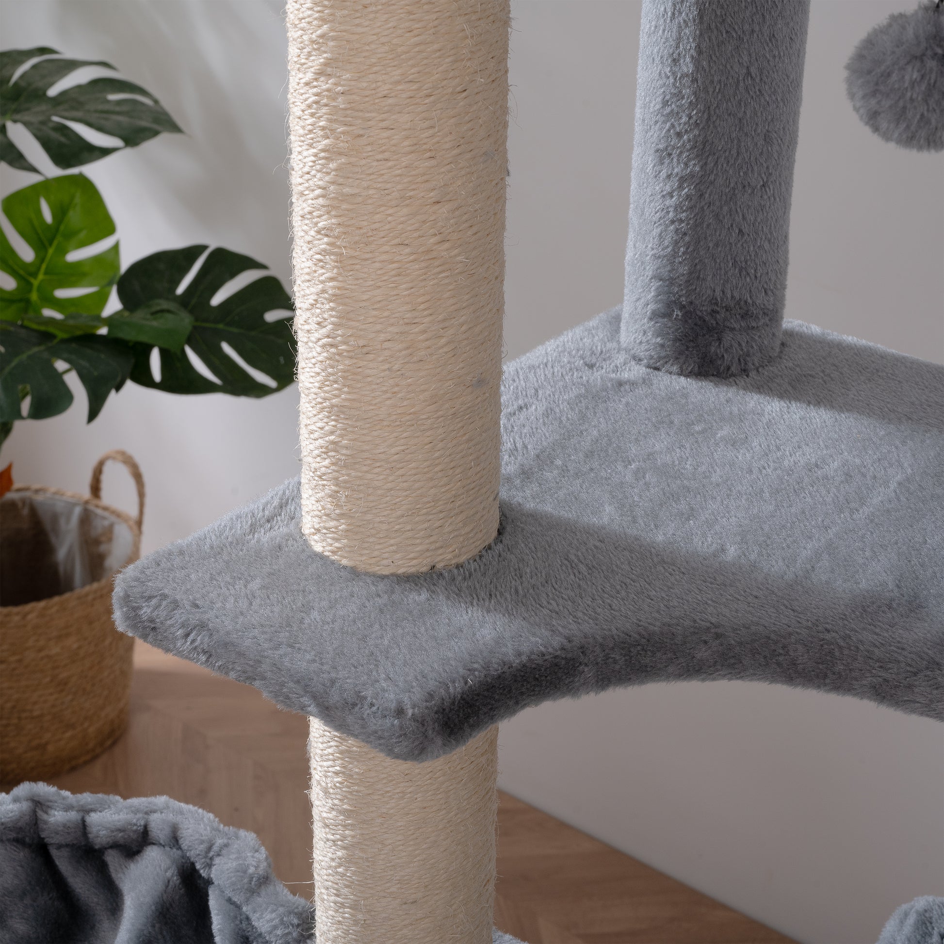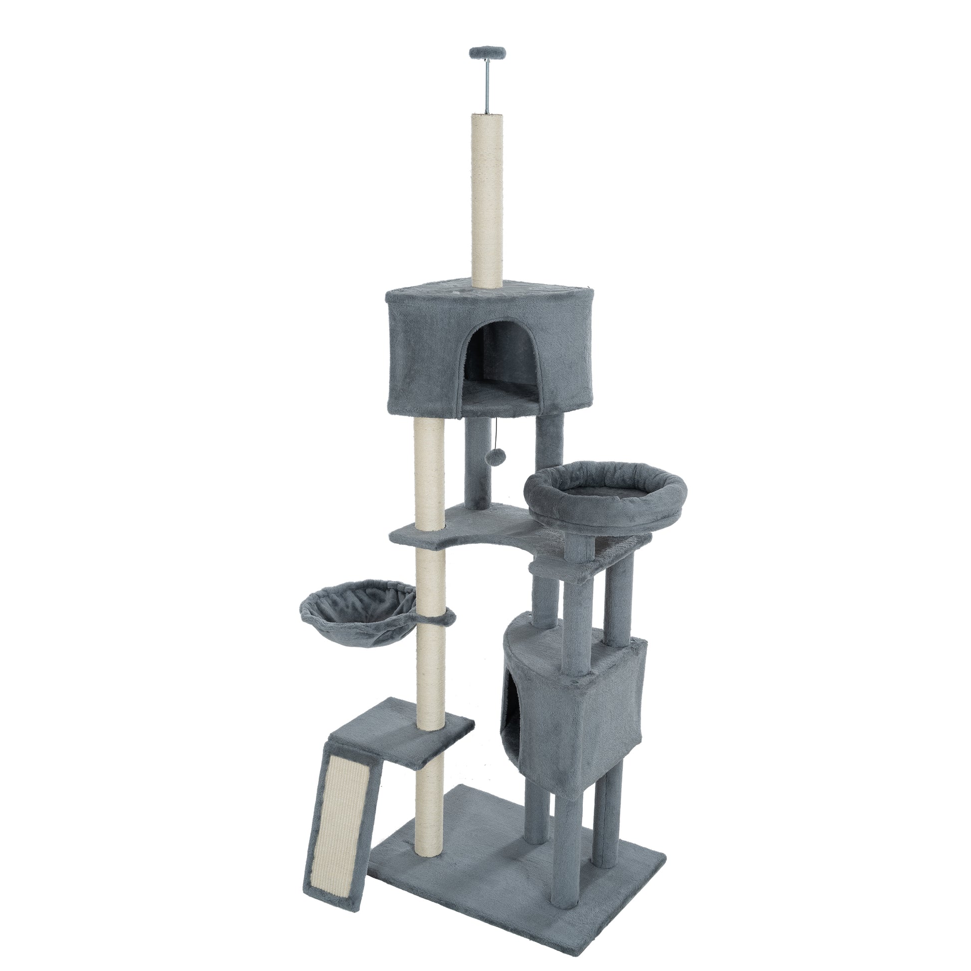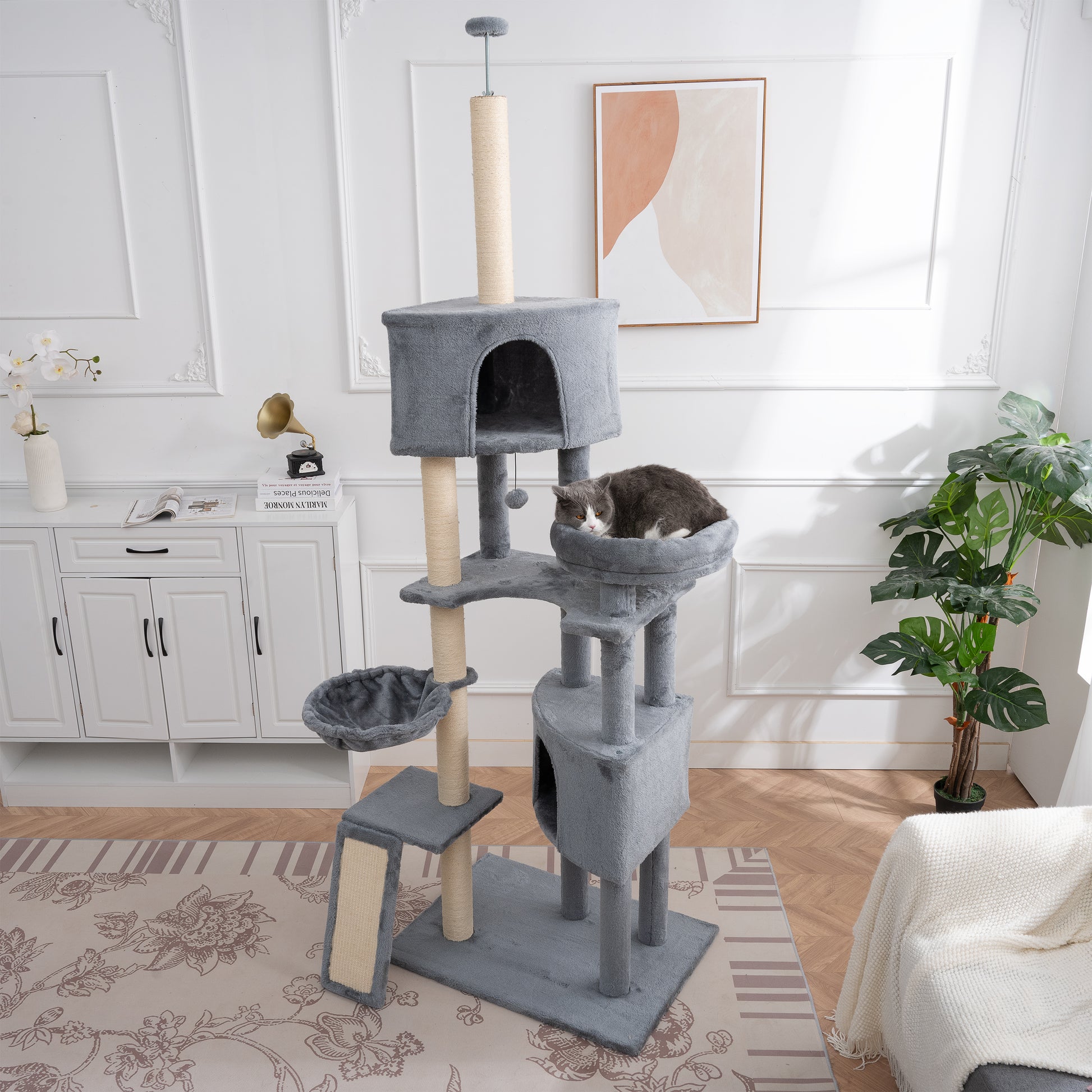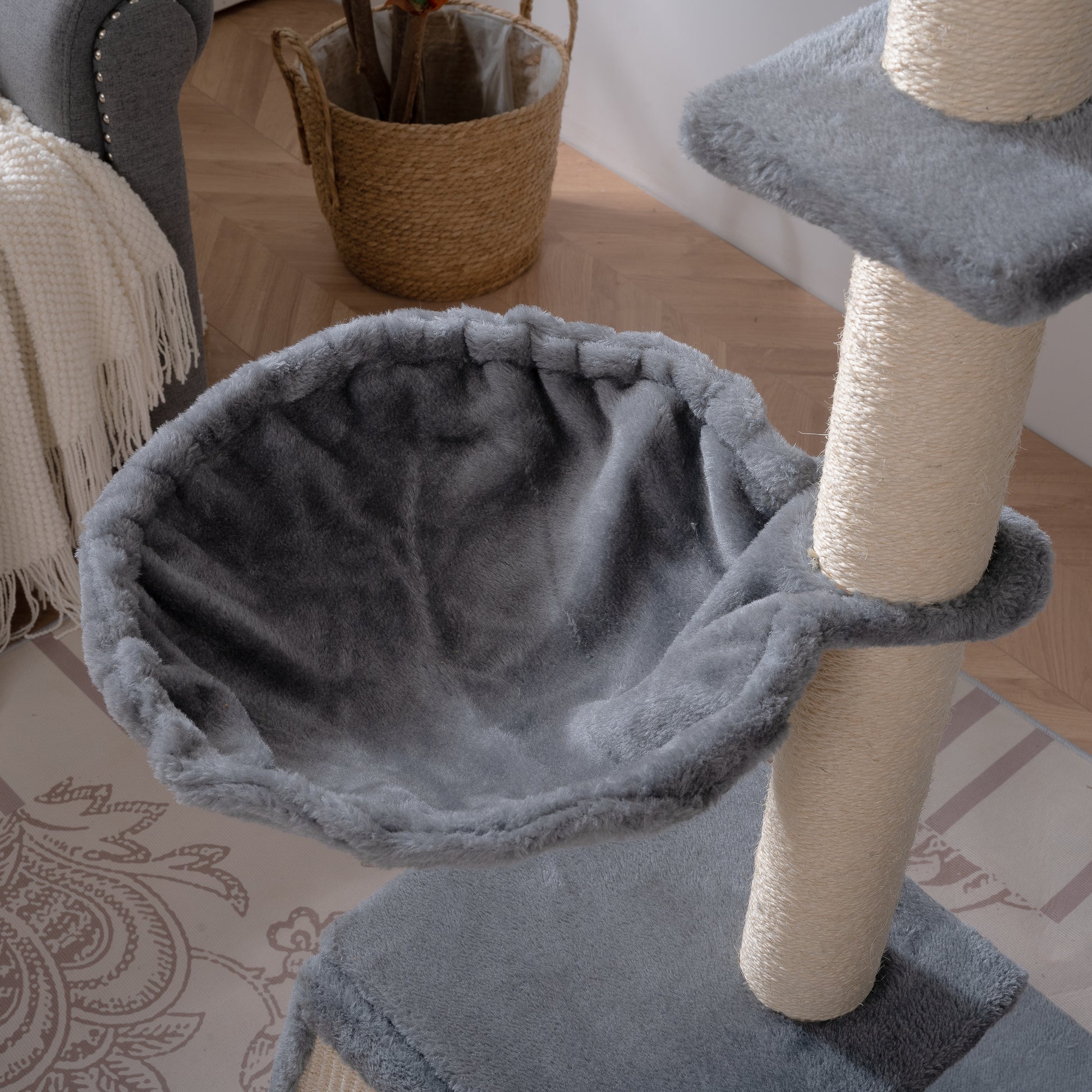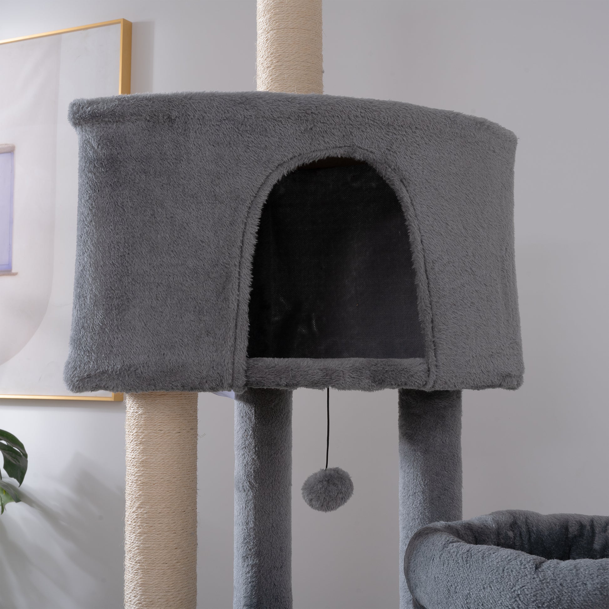 Cat Tree, 105 Inch Cat Tower For Indoor Cats, Plush Multi Level Cat Condo With 3 Perches, 2 Caves, Cozy Basket And Scratching Board, Gray Color Antique Gray Mdf