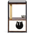 Cat Tree With Feeding Station Cat Condo With Scratching Posts, Small Cat Tree For Indoor Cats With Food Station, Furniture Style Cat House, Indoor Multifunctional Cat Furniture,White Vintage White