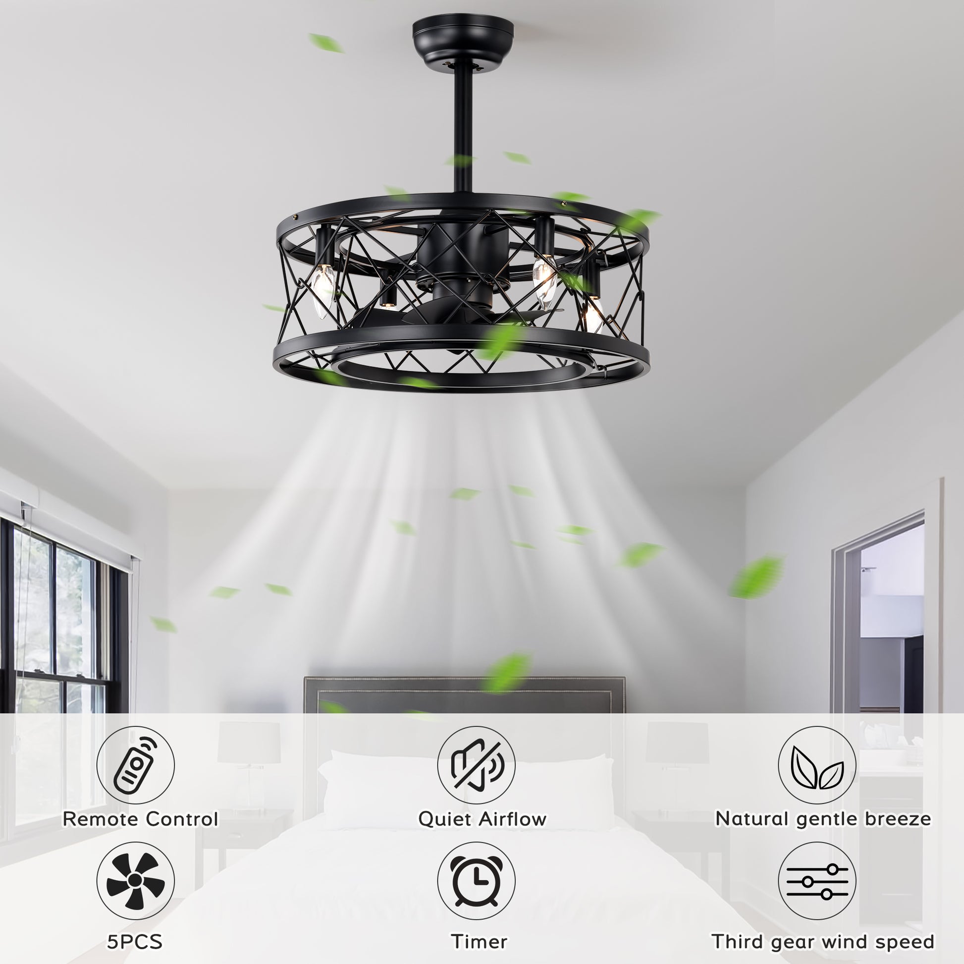 Ceiling Fan Ac Motor Low Noise Small Ceiling Fan Modern Enclosed Reversible Motor Ceiling Fan For Farmhouse, Bedroom Living Roombedroom Matte Black Abs Metal