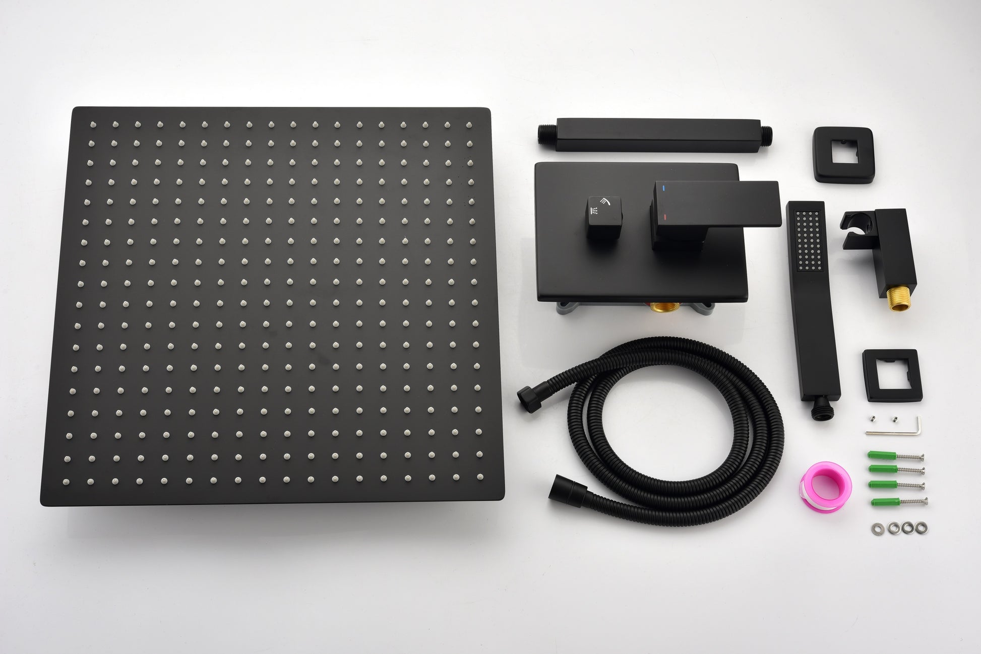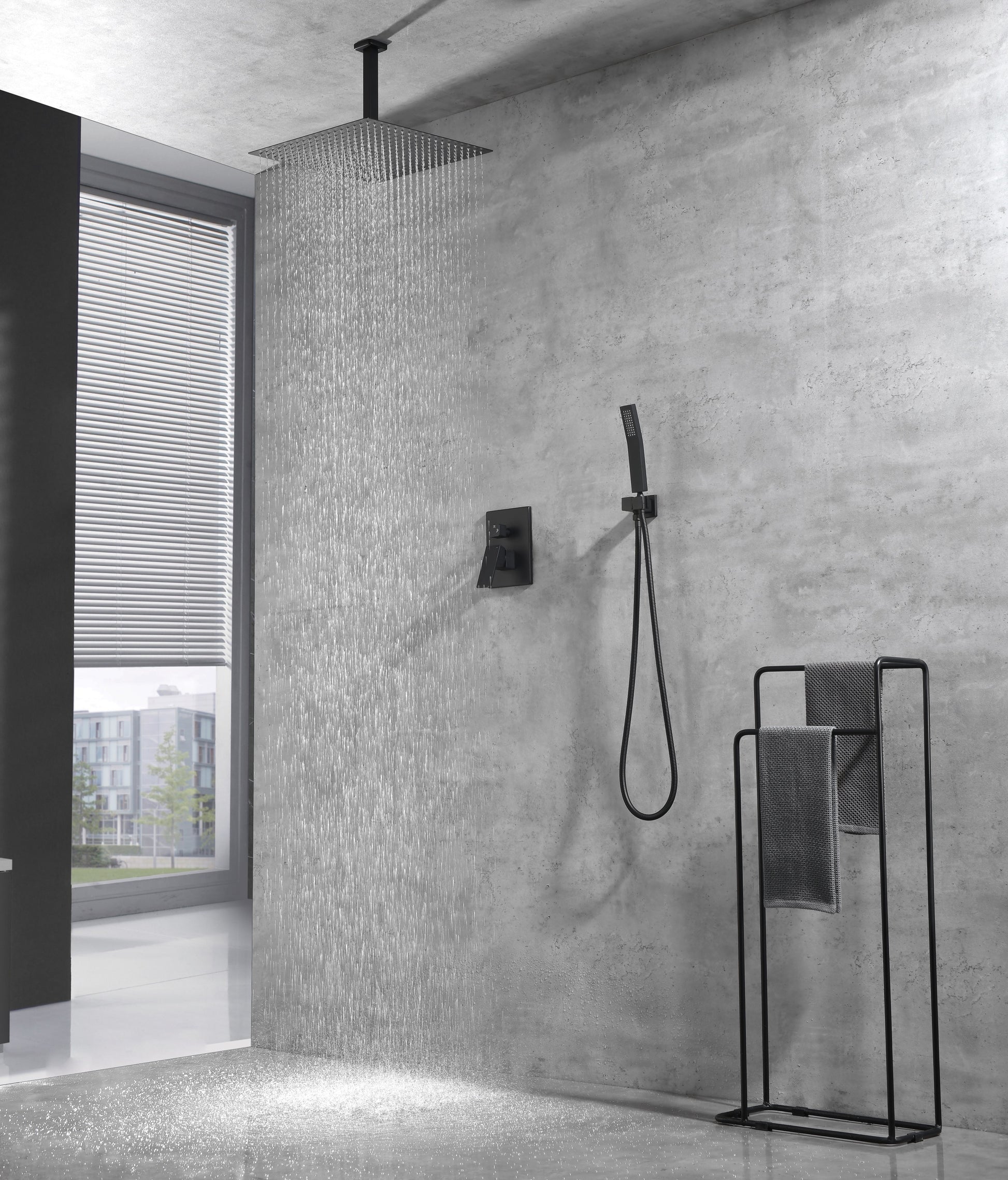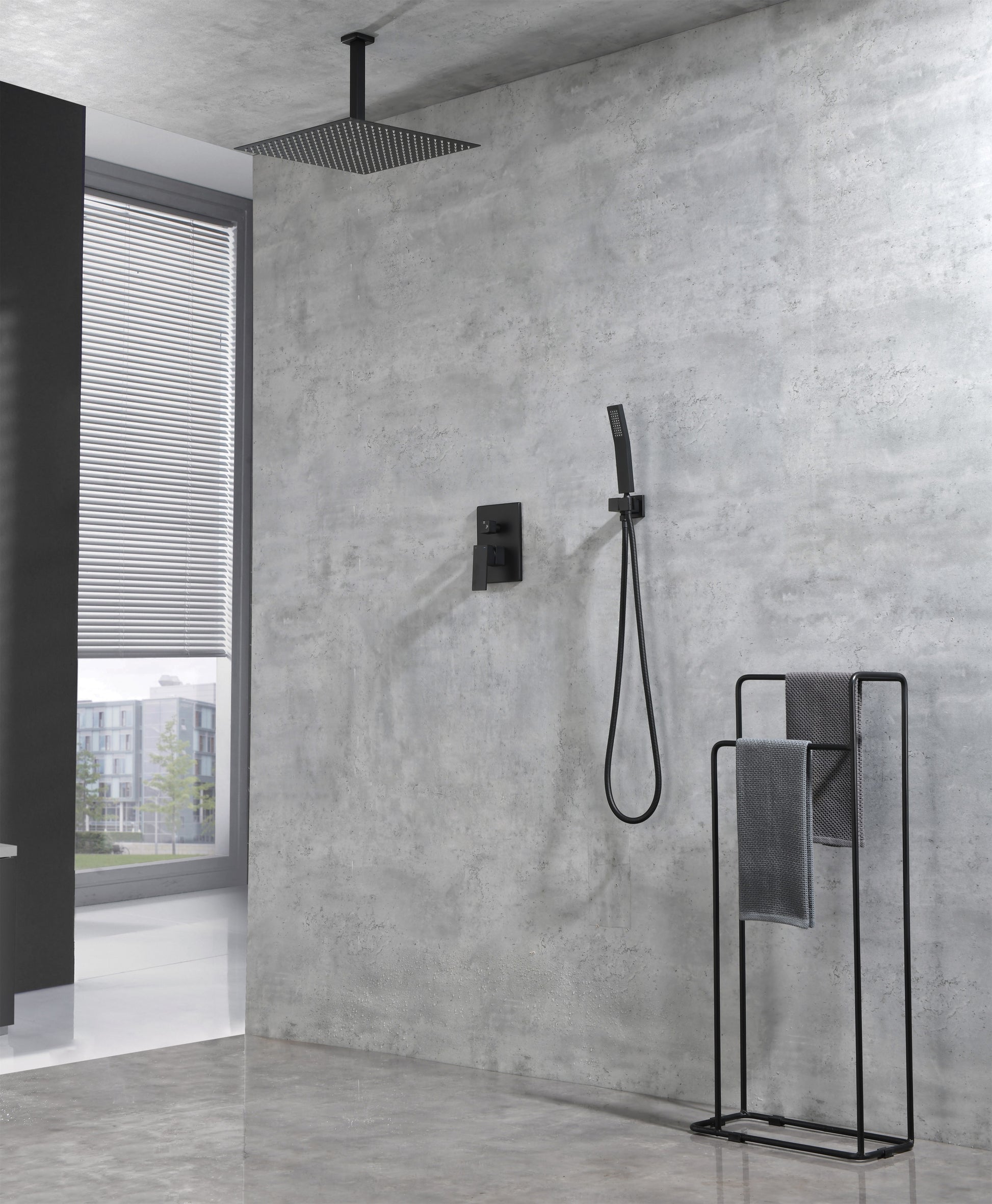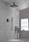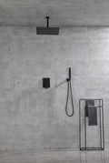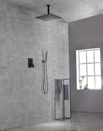 Ceiling Mounted Shower System Combo Set With Handheld And 16"Shower Head Matte Black Brass
