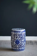 Ceramic Garden Stool, Blue And White Small Side Tabel, D11" X 16" White Blue Porcelain
