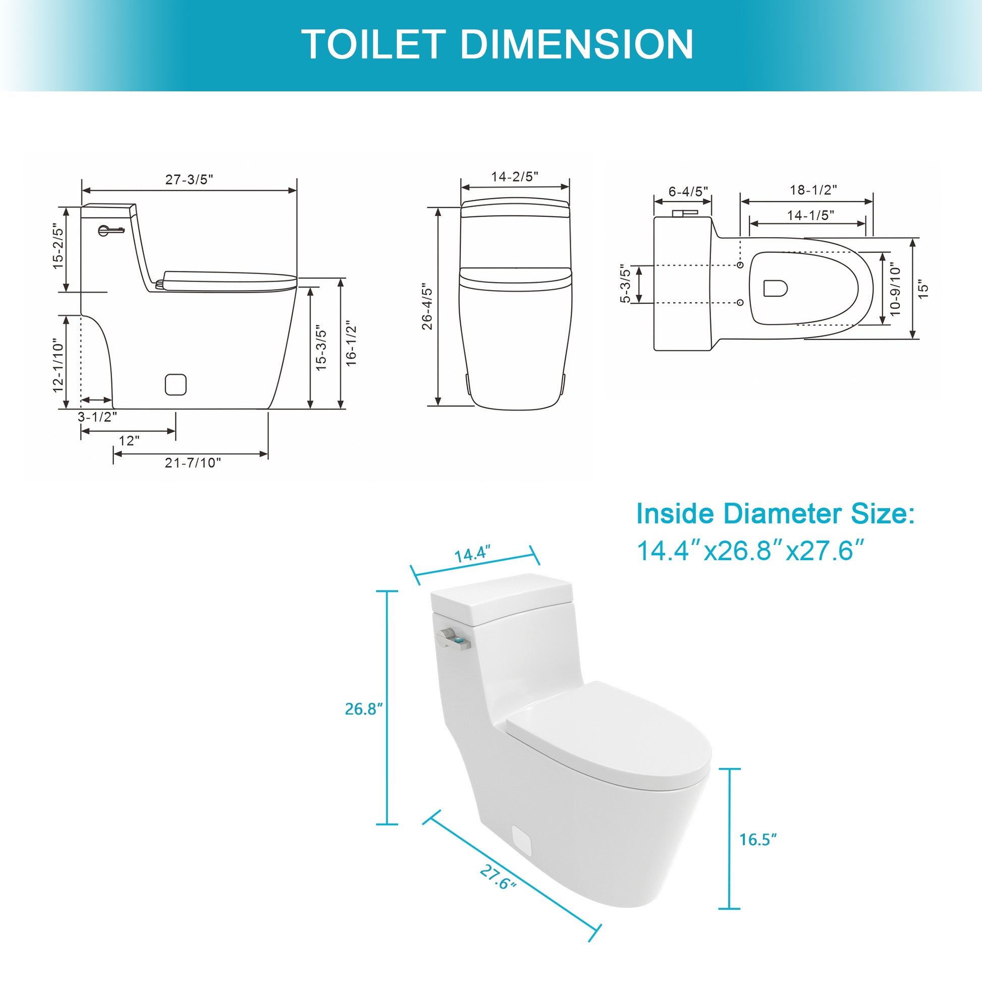Ceramic One Piece Toilet,Single Flush With Soft Clsoing Seat White Ceramic