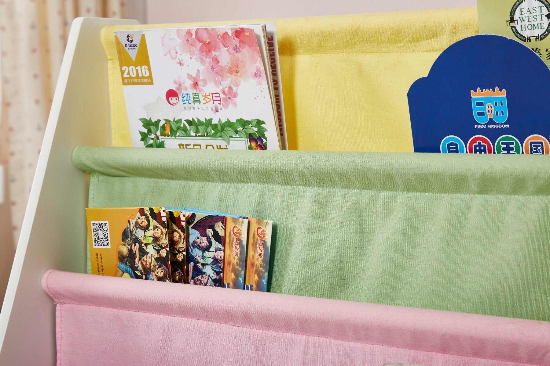 Charlie White Kids Wooden Canvas Sling Magazine Bookcase White Mdf
