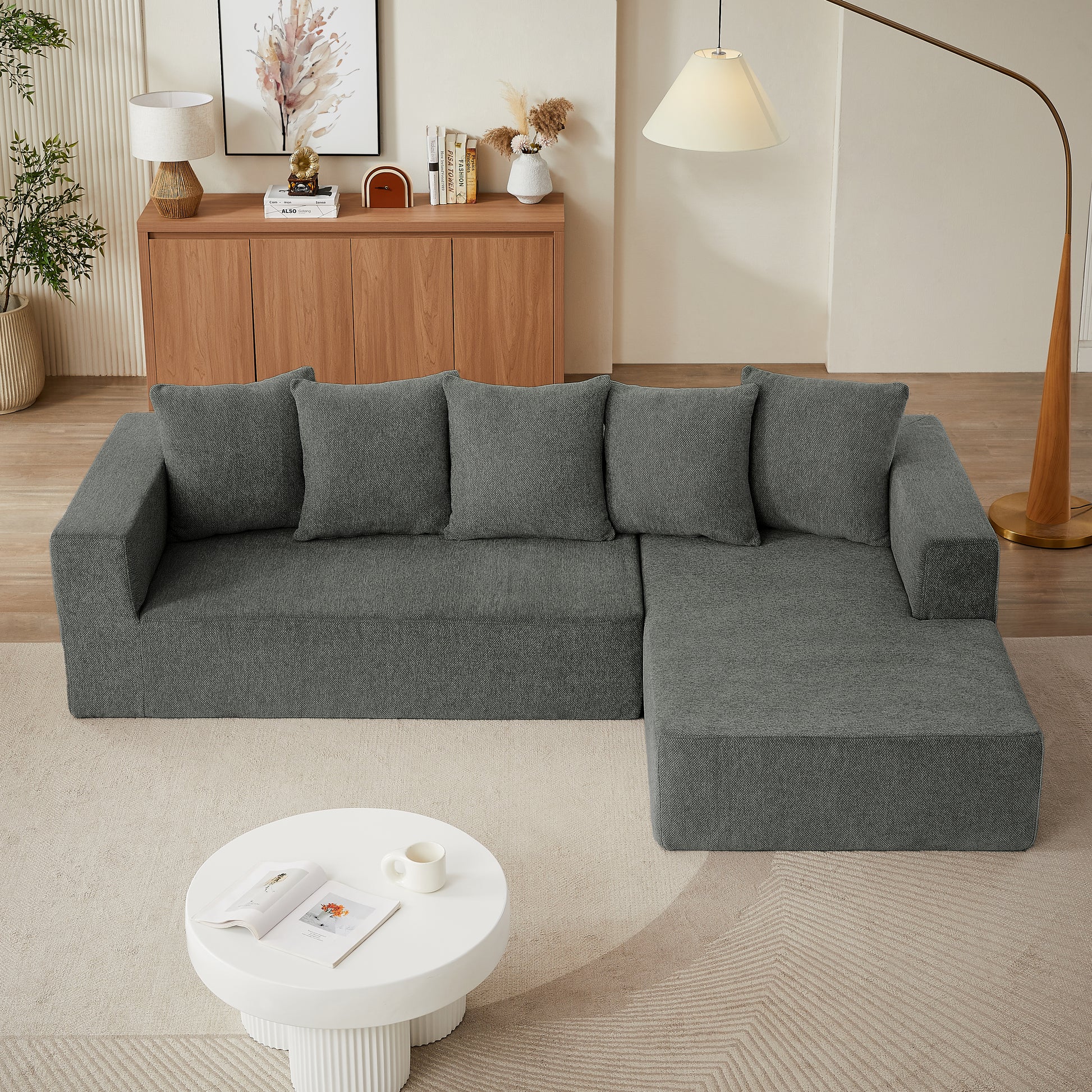 Chenille L Shaped Sectional Sofa Set,Minimalist Style Modular Sectional Sofa, Luxury Chenille Fabric Cloud Couch For Living Room Grey Chenille 4 Seat