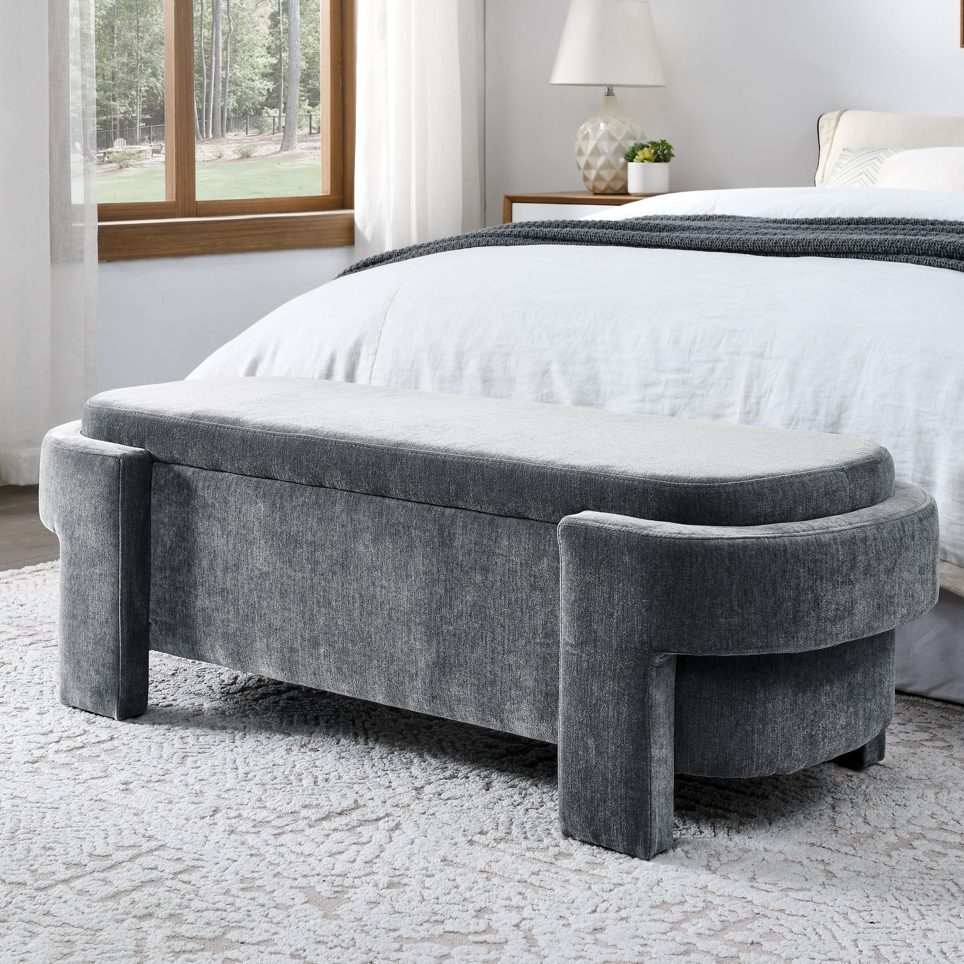 Chenille Upholstered Bench With Large Storage Space For The Living Room, Entryway And Bedroom,Grey, 51.5''X20.5''X17'' Grey Foam