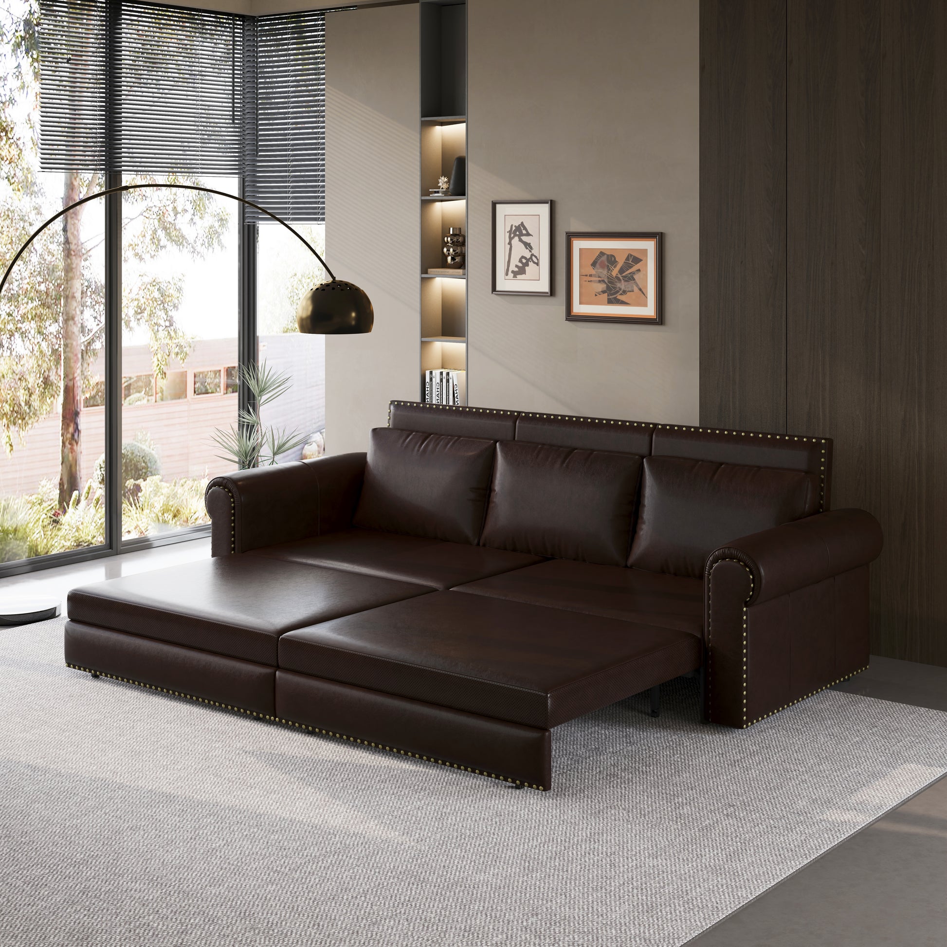 Chesterfield Sofa,93.7" King Pull Out Sofa Bed, 3 In 1 Faux Leather Convertible Sleeper Sofa With Trim & Rolled Arm,Multi Functional Sofa Bed For Living Room,Bedroom,Apartment,Office Dark Brown Faux