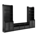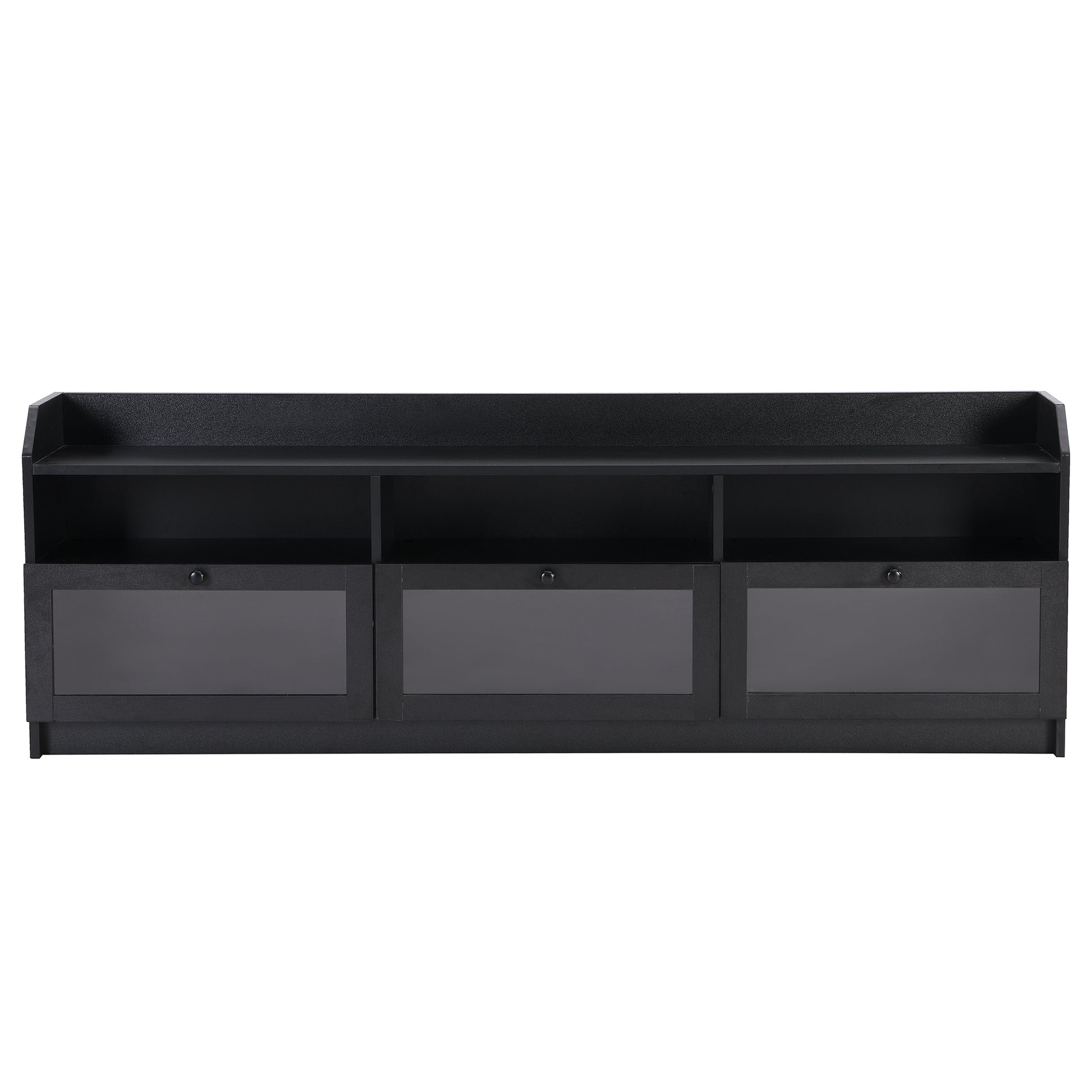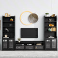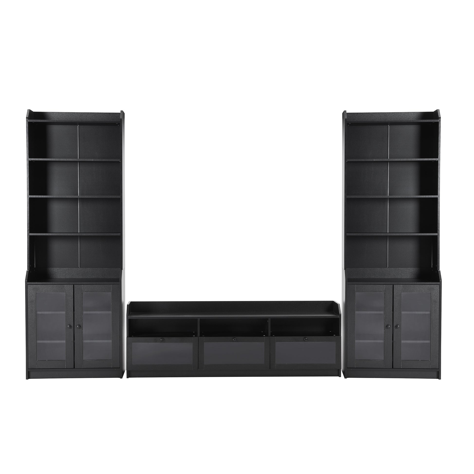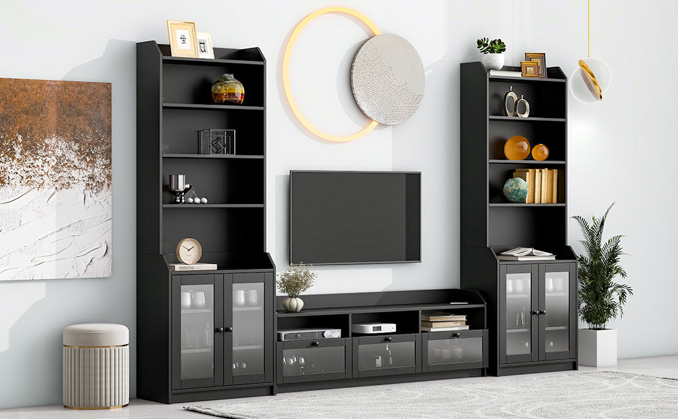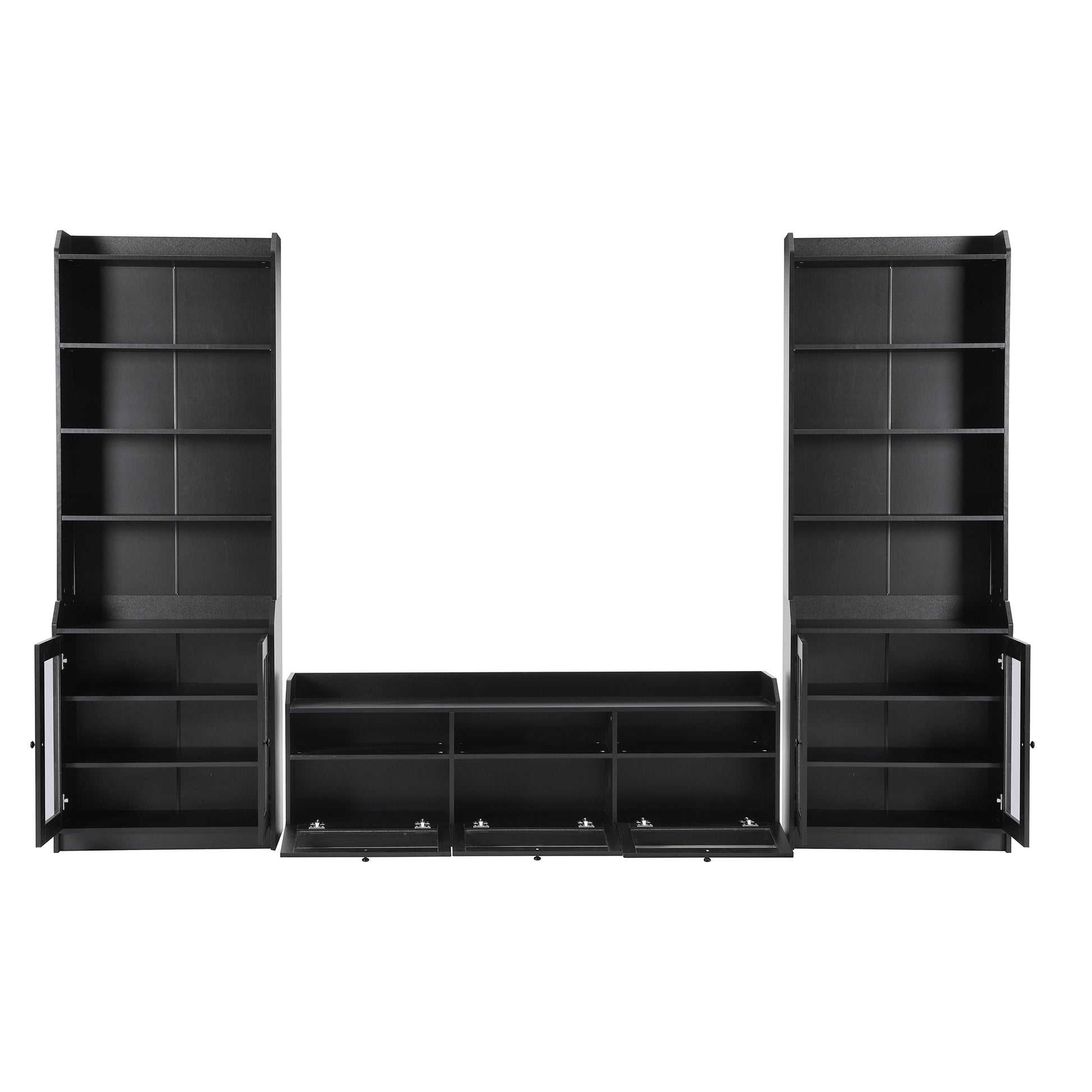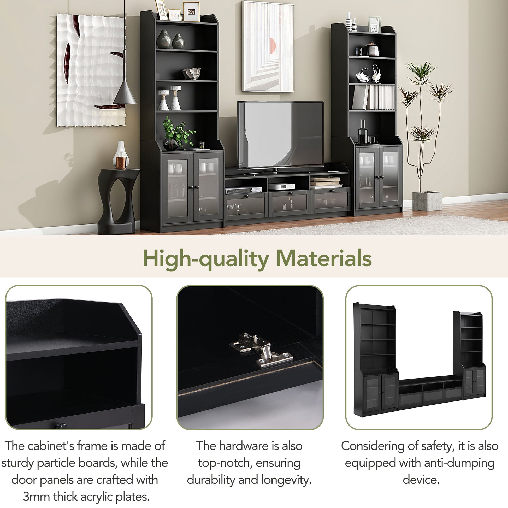 Chic Elegant Entertainment Wall Unit With Tall Cabinets, Modern Tv Console Table For Tvs Up To 65", Multifunctional Tv Stand Set With Acrylic Board Door, Black Black Primary Living Space 60 69 Inches 60 69 Inches 65 Inches Particle Board