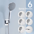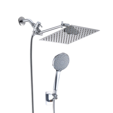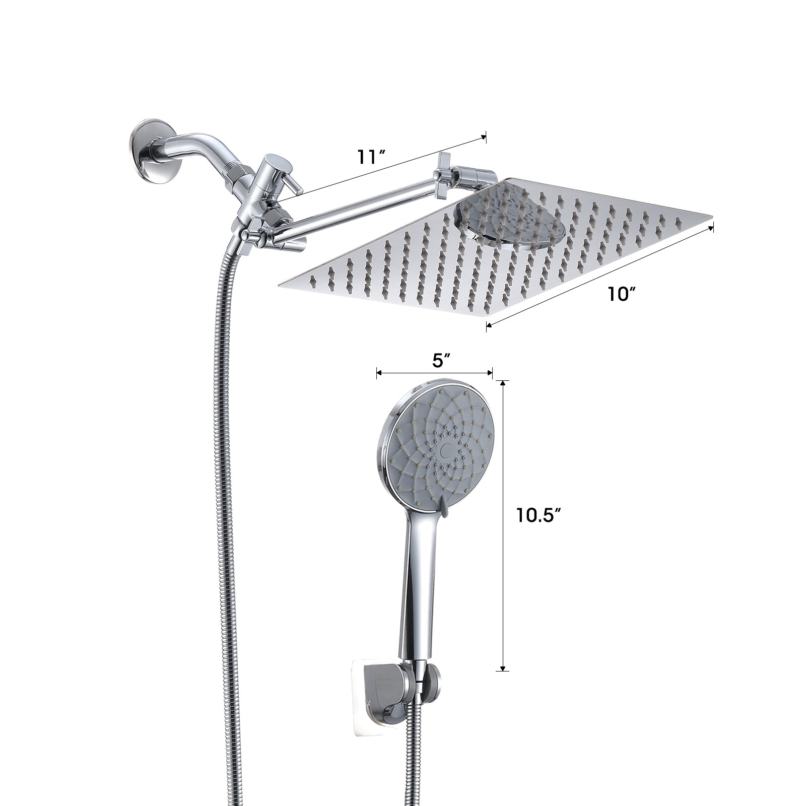 Chrome Shower Head, 10 Inch High Pressure Rainfall Shower Head Handheld Shower Combo With 11 Inch Extension Arm, 6 Settings Adjustable Anti Leak Shower Head With Holder Hose, Height Angle Adjustable Chrome Metal