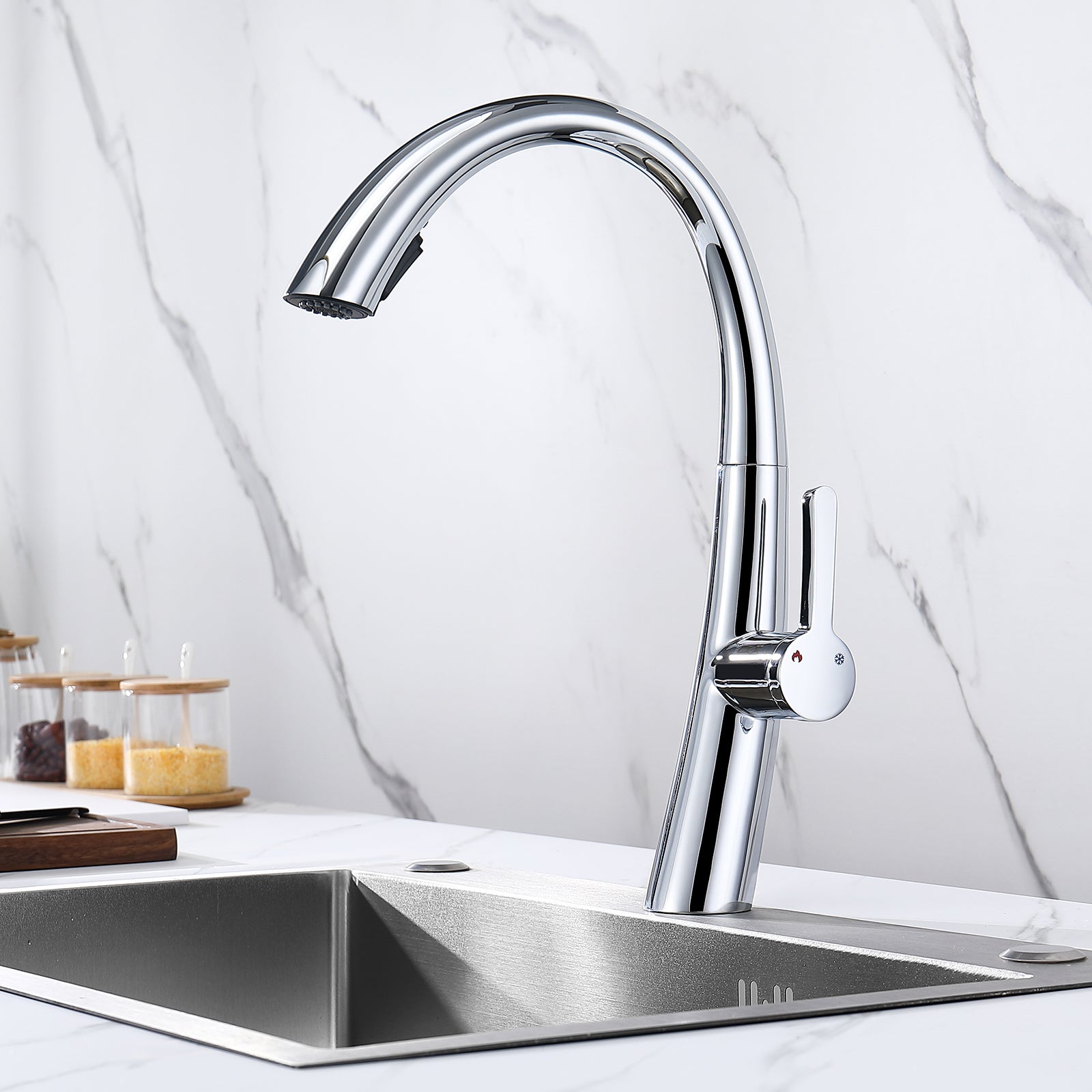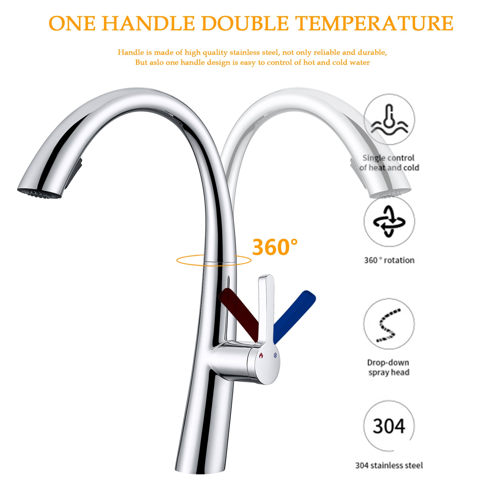 Chrome Single Handle Stainless Steel Pull Out Kitchen Faucet Chrome Stainless Steel