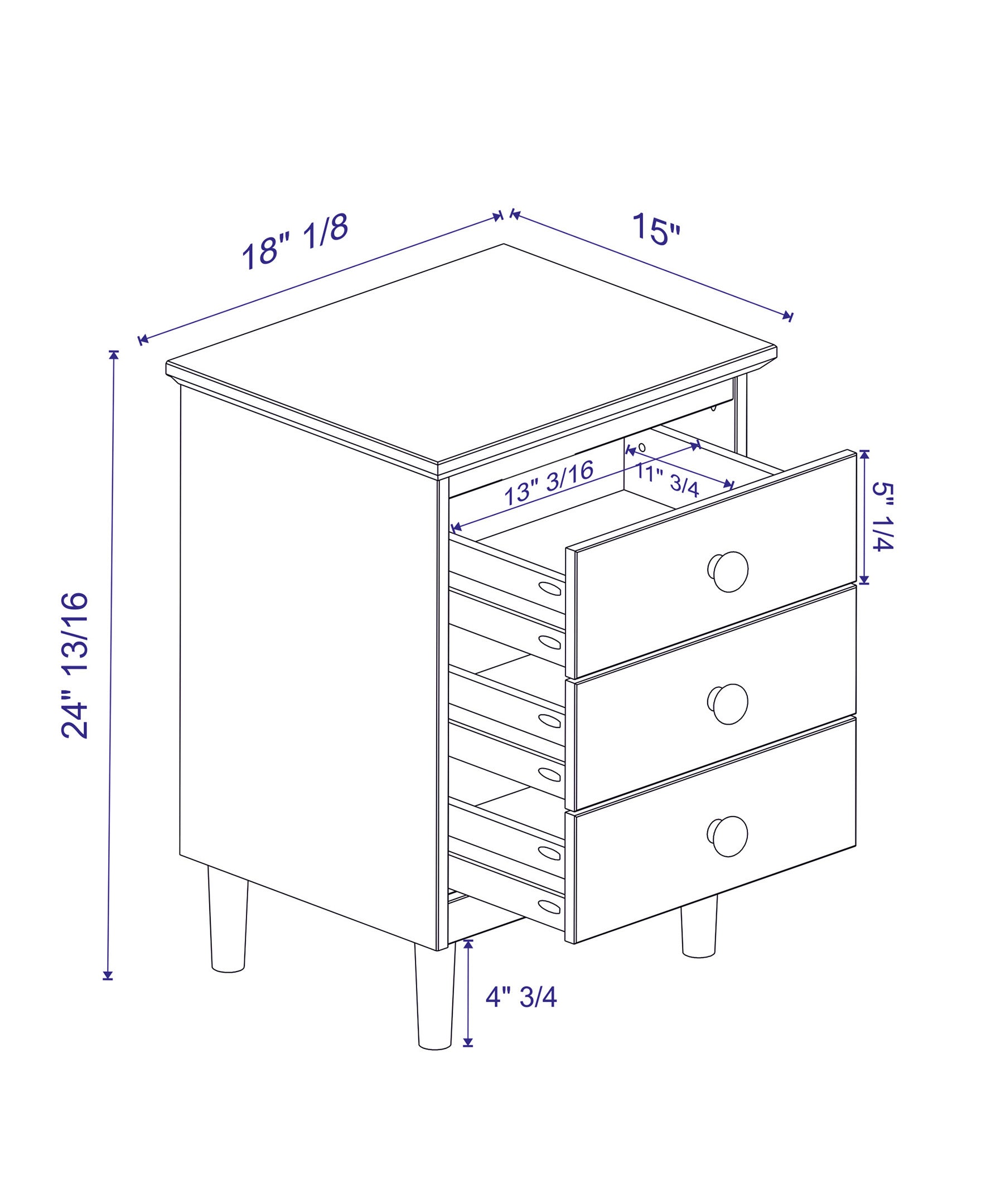 Classic 3 Drawer Solid Wood Nightstand Caramel Caramel Mdf Pine