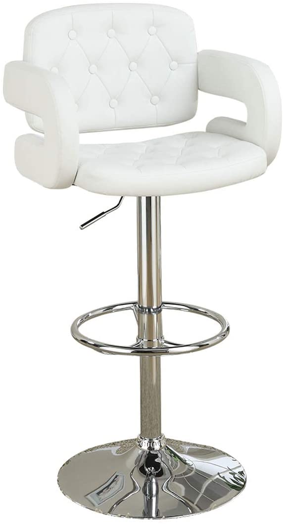 Add a stylish touch to your home bar or kitchen counters with the Faux Leather Tufted Bar Stool in Black with Chrome Base and Adjustable Height. This chair is uniquely shaped for a comfortable fit while you're seated. The Elama adjustable chair is also crafted from quality and sturdy metal for a strong and long-lasting design.