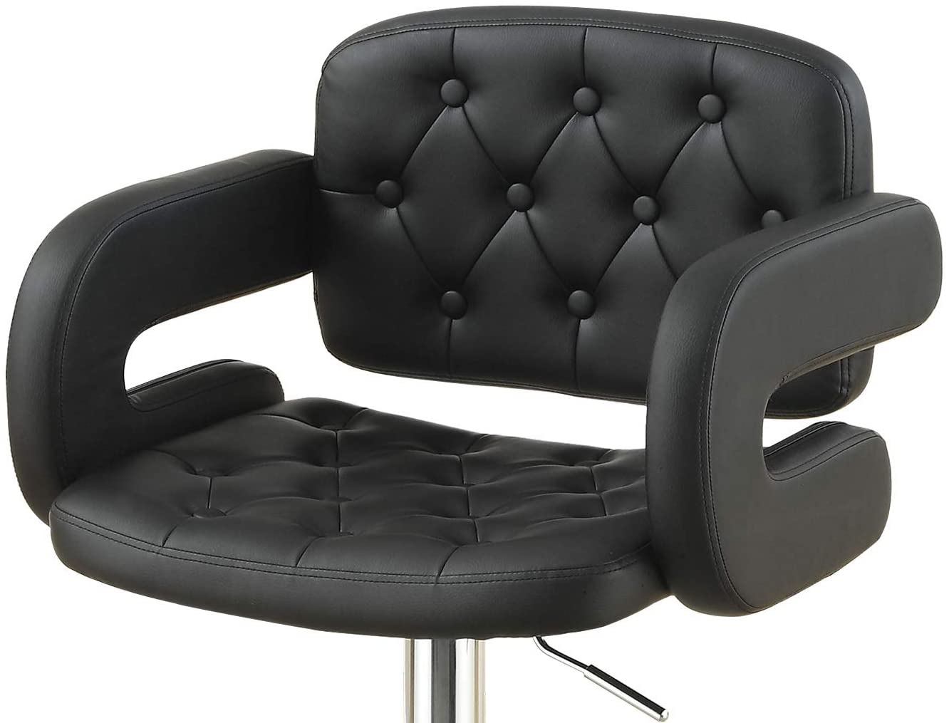 Classic Armrest Tufted Faux Leather Upholstered Faux Leather Barstool Chair Adjustable Height Swivel Kitchen Stools 1Pc Chair Black Dining Room Contemporary,Modern Fabric