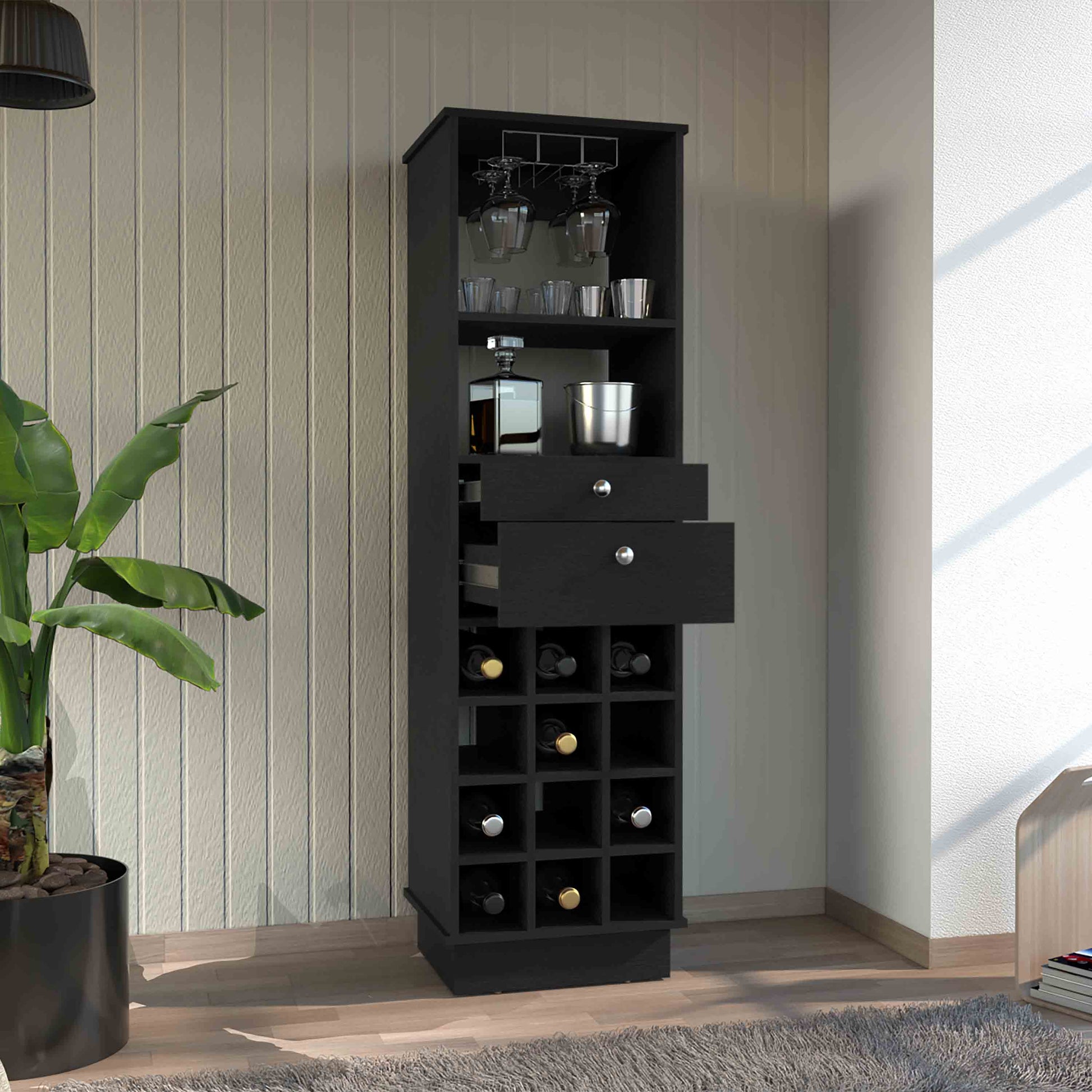 Classic Bar Cabinet, Two Drawers, Twelve Built In Wine Rack Black Black Dining Room Modern Particle Board Particle Board