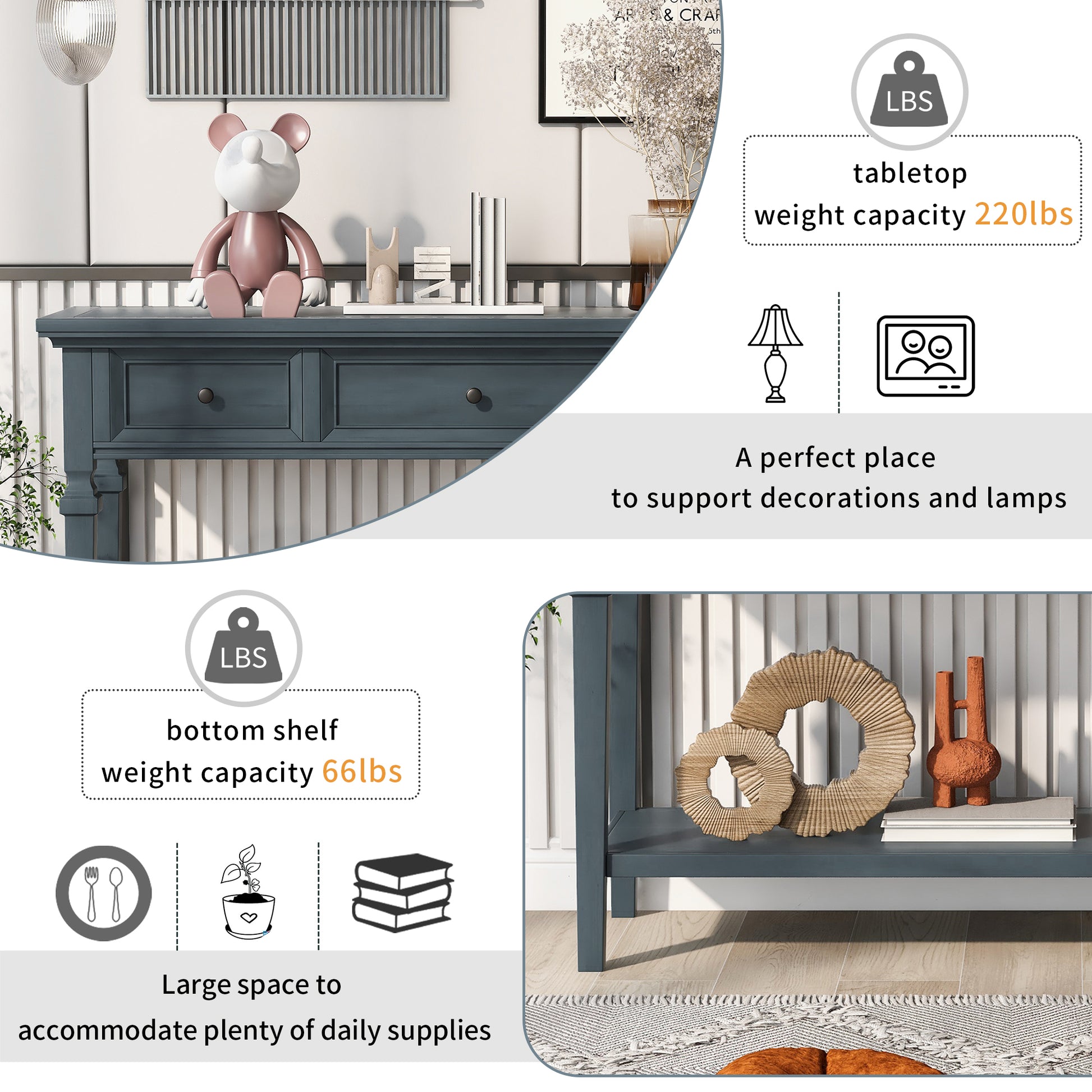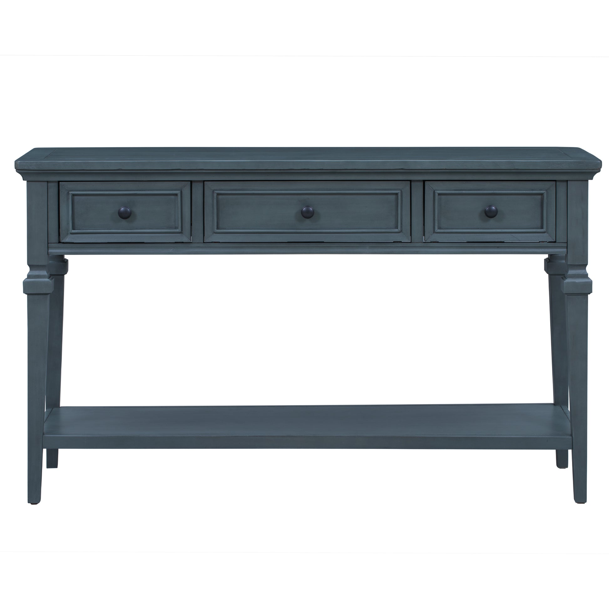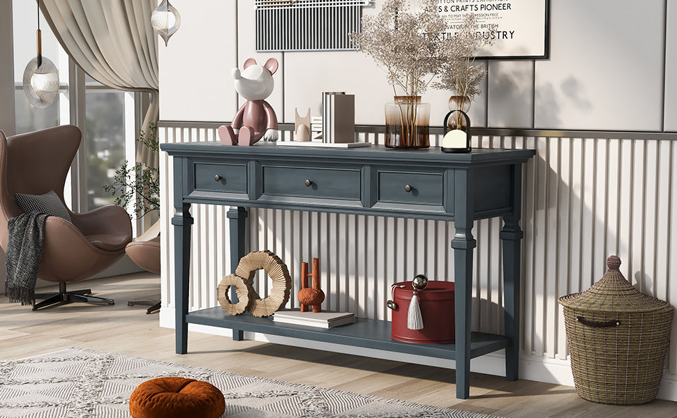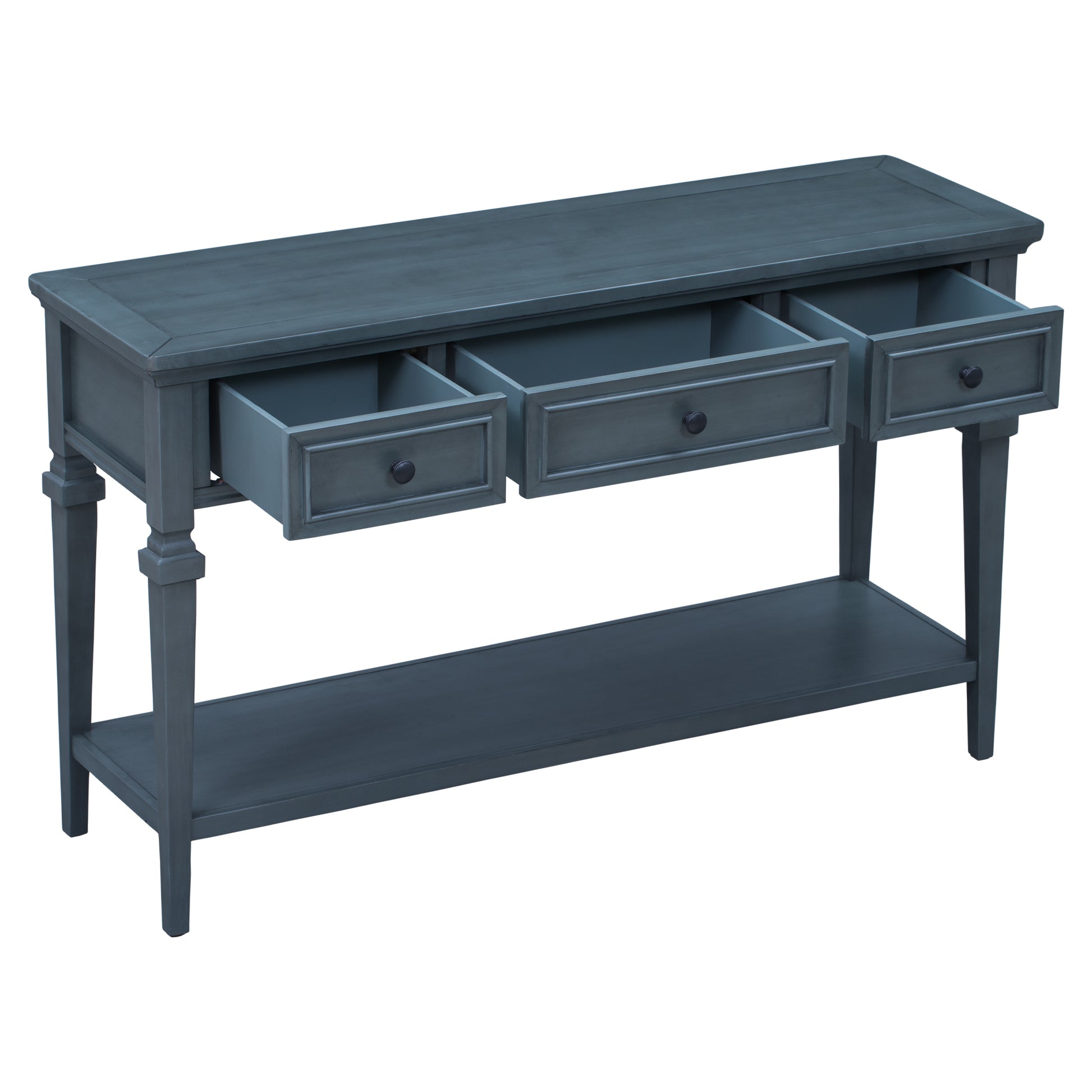 Classic Retro Style Console Table With Three Top Drawers And Open Style Bottom Shelf, Easy Assembly Navy Navy Solid Wood