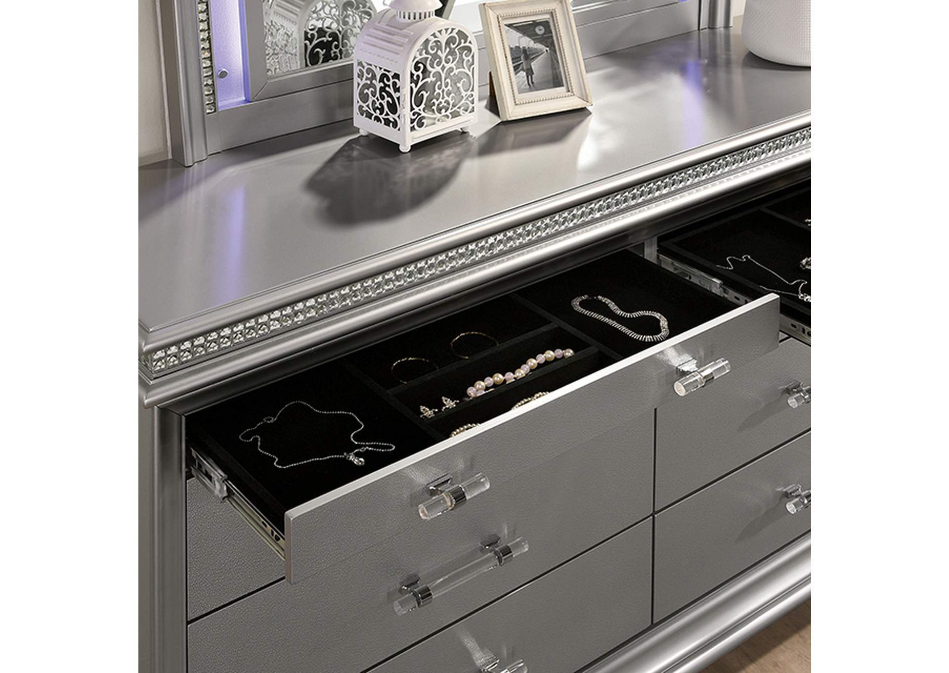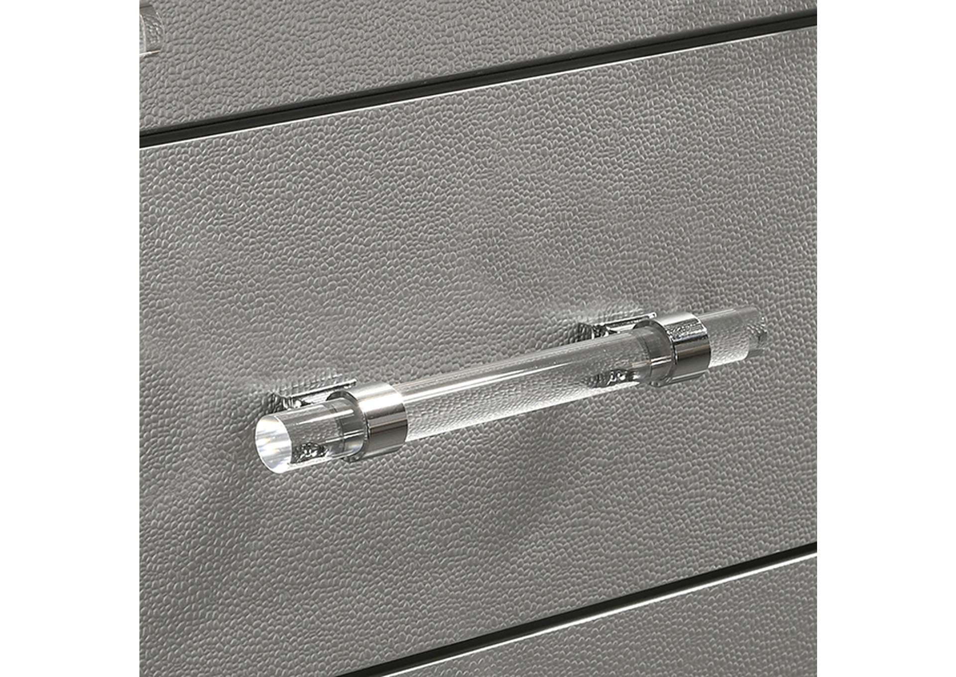 Create a room made for a princess with this night stand. It features acrylic legs and crystal accents creating a glamorous aesthetic. Give into your glitzy side with this opulent set.