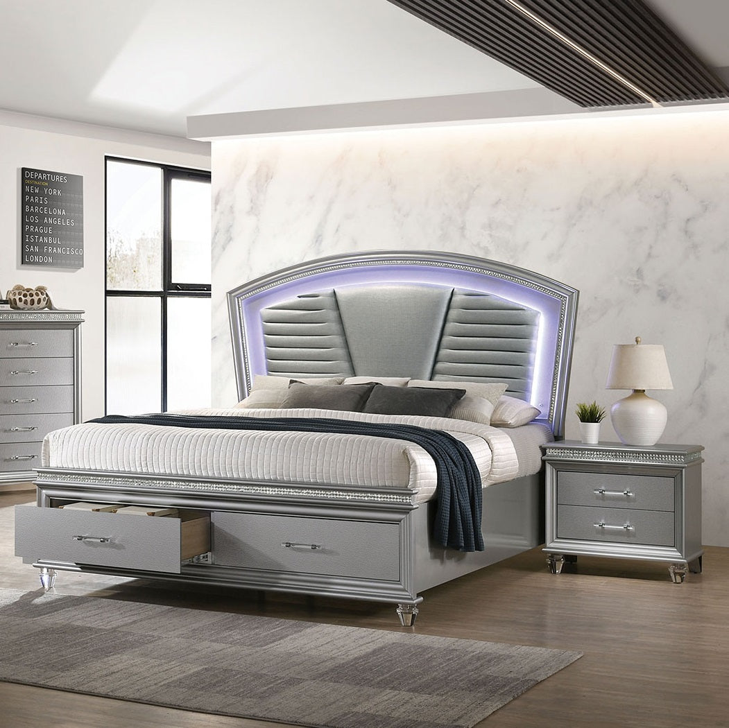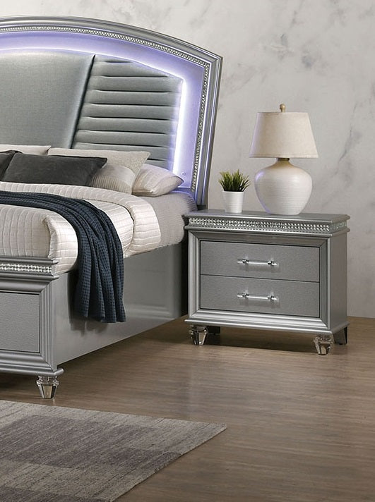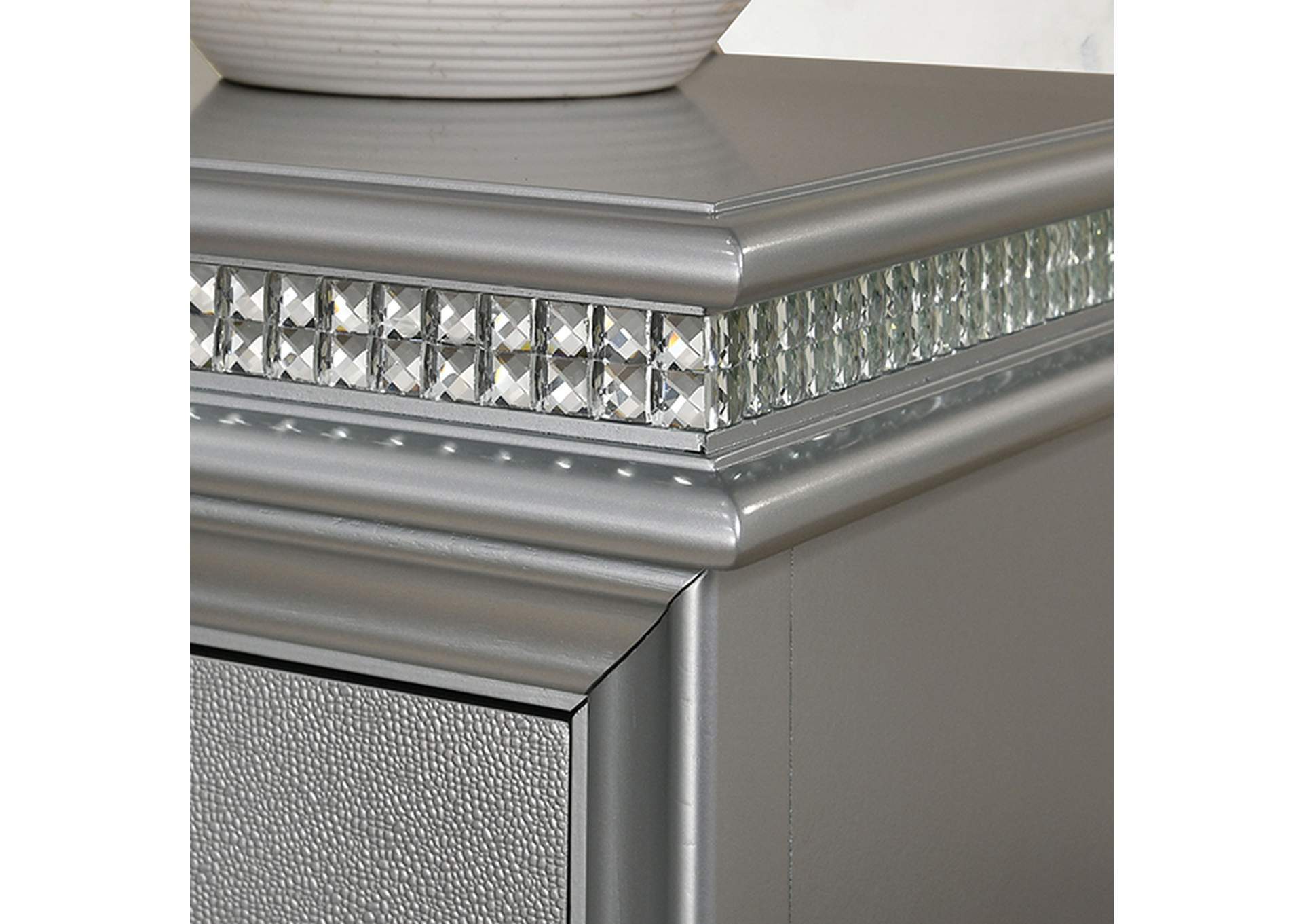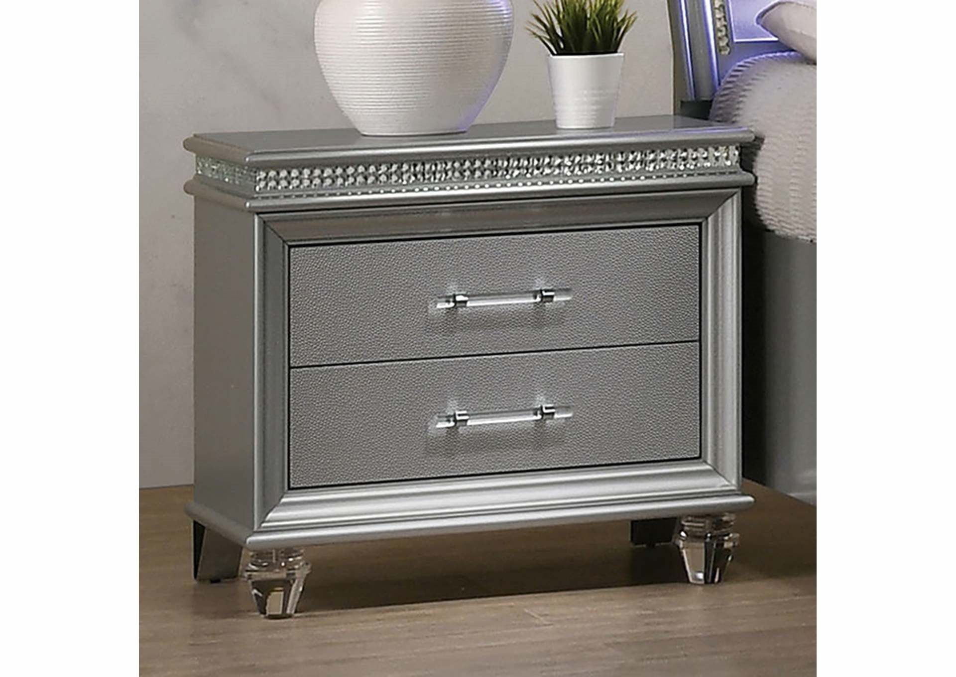 Classic Silver1Pc Nightstand Only Contemporary Solid Wood 2 Drawers Felt Lined Top English Dovetail Acrylic Legs & Pull Handle Silver 2 Drawers Bedroom Bedside Cabinet Contemporary,Modern Solid Wood Solid Wood