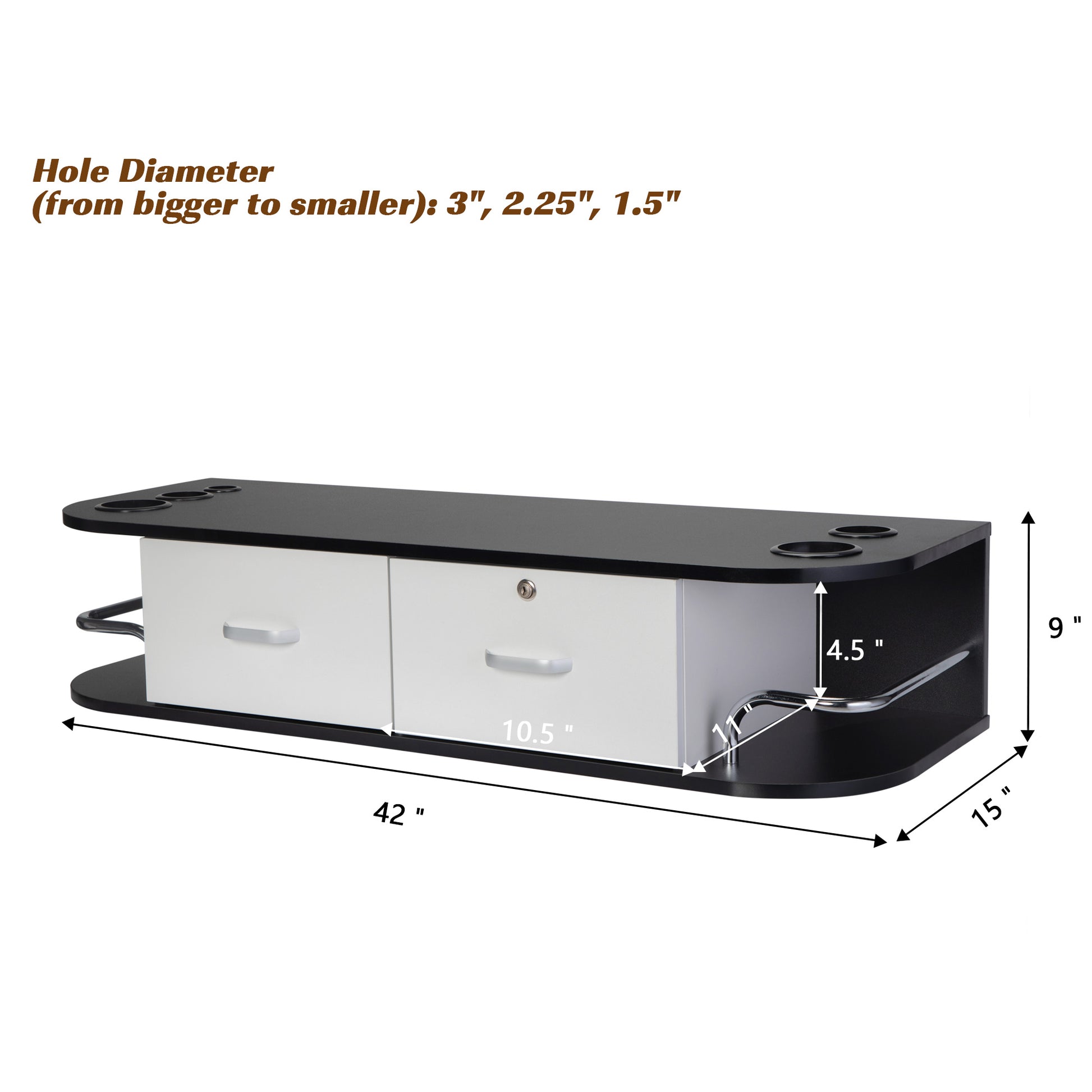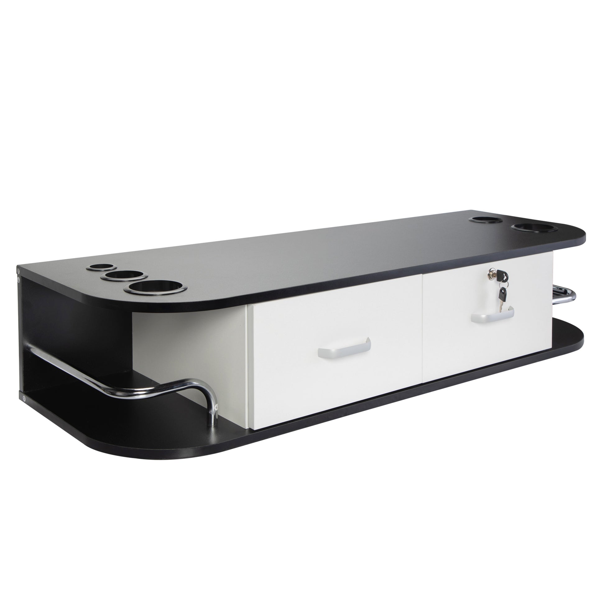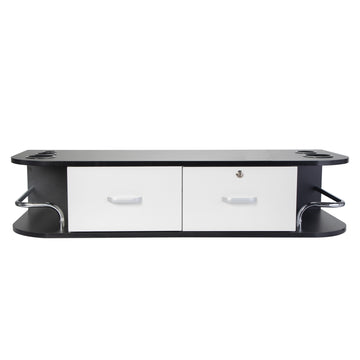Classic Wall Mounted Beauty Salon, Barber Styling Station, Salon Equipment With Locking 2 Drawers, Black White White Black Particle Board