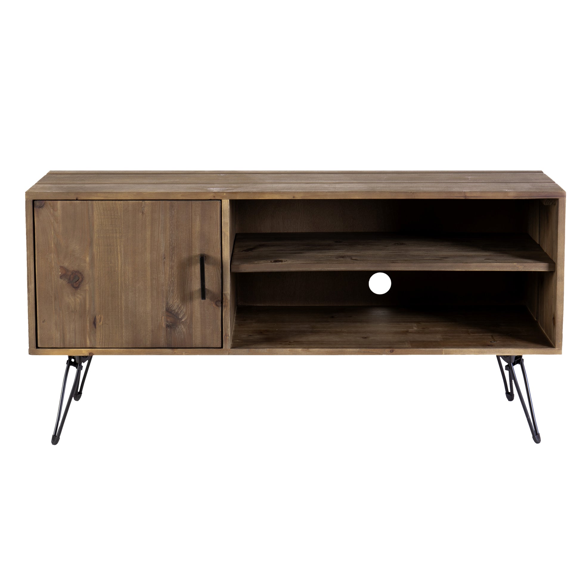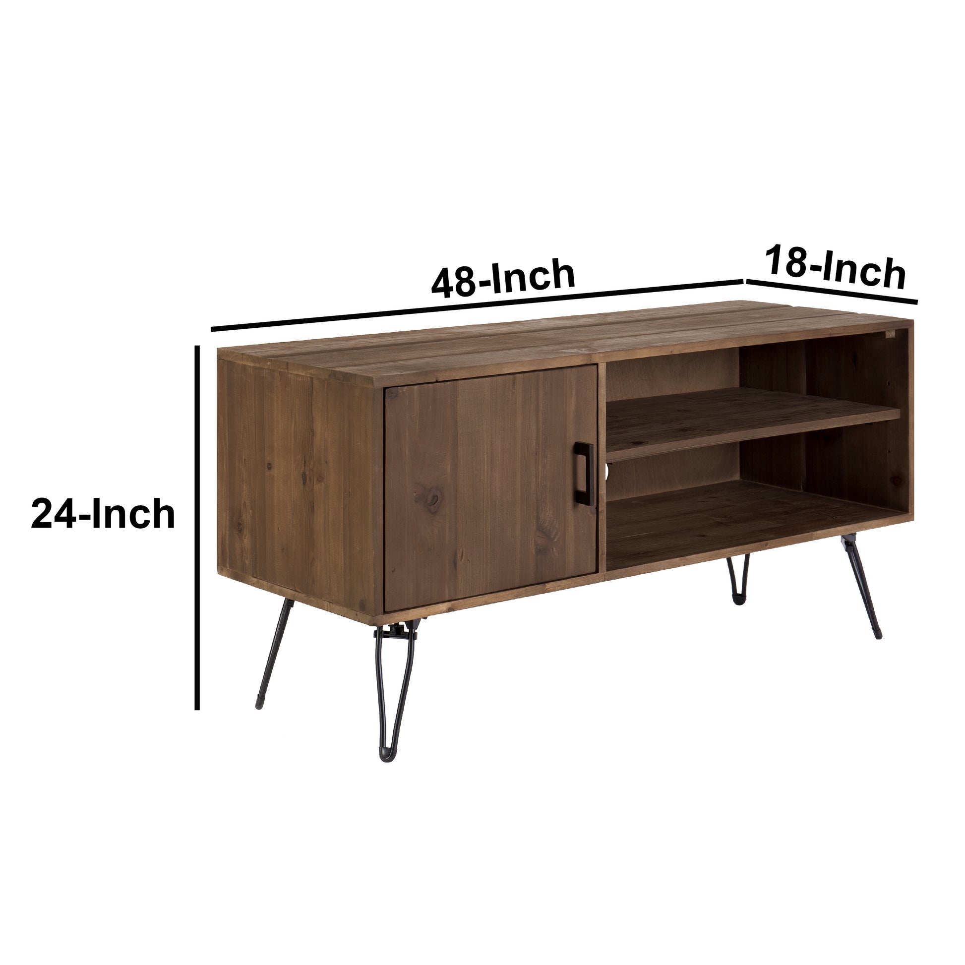 Clive 48 Inch Reclaim Wood Rectangle Farmhouse Media Console Tv Stand, 1 Door, Iron Legs, Rustic Brown Brown Solid Wood
