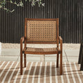 Coastal Solid Wood And Rattan Outdoor Accent Chair Dark Brown Dark Brown Wood Acacia Wood