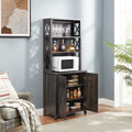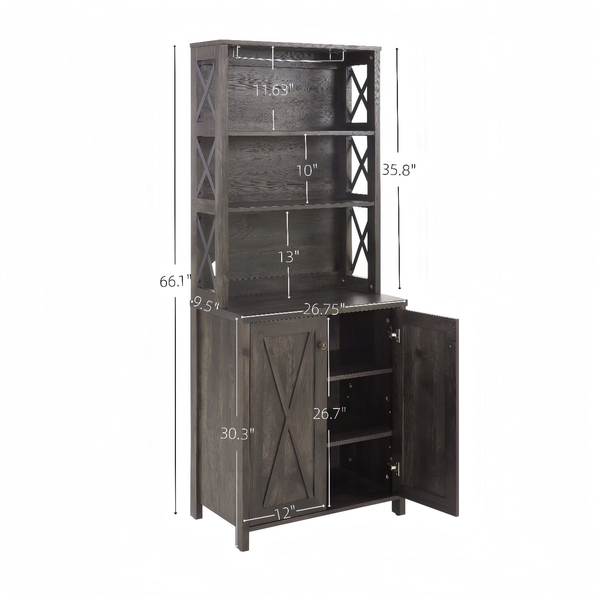 Coffee Bar Cabinet Kitchen Cabinet With Microwave Stand, Wood Frame Side Home Source Bar Cabinet And Hollow Out Barn Design Wood Cabinet L26.75''*W15.13''*H66.1'' Charcoal Gray Charcoal Grey Mdf