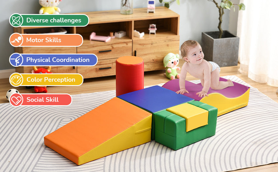 Colorful Soft Climb And Crawl Foam Playset 6 In 1, Soft Play Equipment Climb And Crawl Playground For Kids,Kids Crawling And Climbing Indoor Active Play Structure Colorful Foam