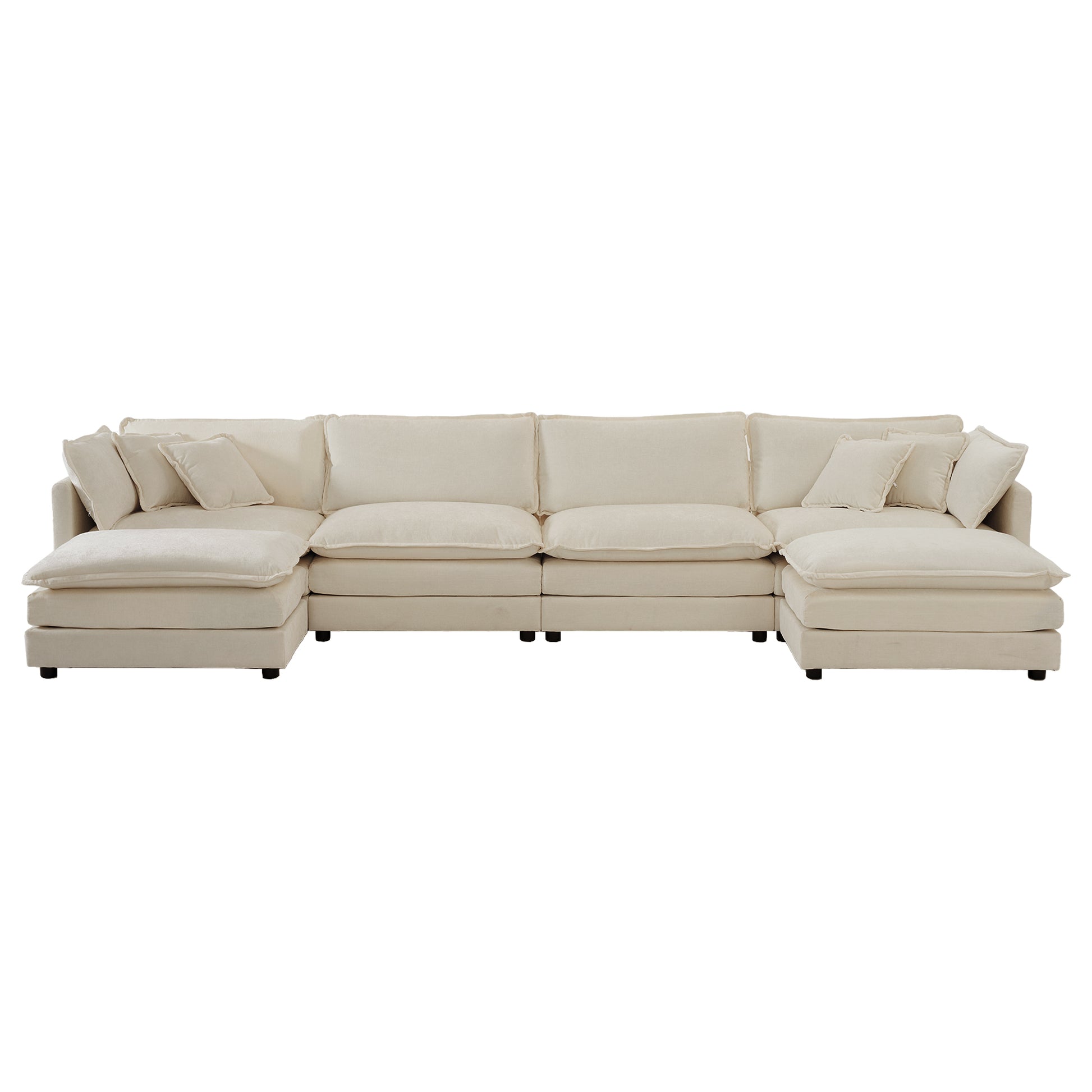 Comfort U Shaped Couch With Reversible Chaise, Modular Large U Shape Sectional Sofa, Double Extra Ottomans,Beige Chenille Beige Chenille 4 Seat
