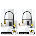 Commercial Black And Nickel Gold Kitchen Faucet With Pull Out Sprayer, Single Handle Single Lever Kitchen Sink Faucet Black Gold Kitchen Contemporary Ceramic Stainless Steel