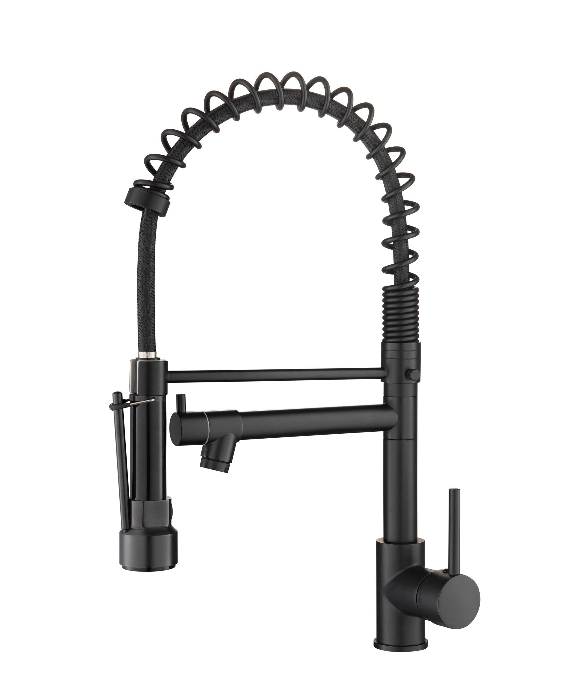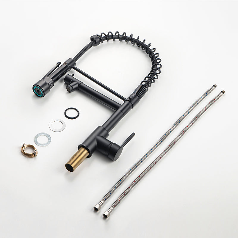 Commercial Black Kitchen Faucet With Pull Down Sprayer, Single Handle Single Lever Kitchen Sink Faucet Black Kitchen Contemporary Ceramic Brass