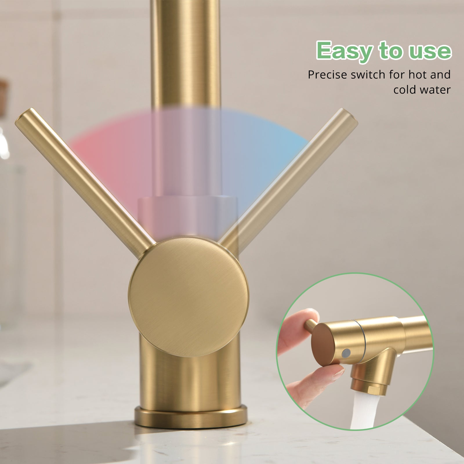 Commercial Kitchen Faucet With Pull Down Sprayer, Single Handle Single Lever Kitchen Sink Faucet Gold Kitchen Contemporary Ceramic Brass