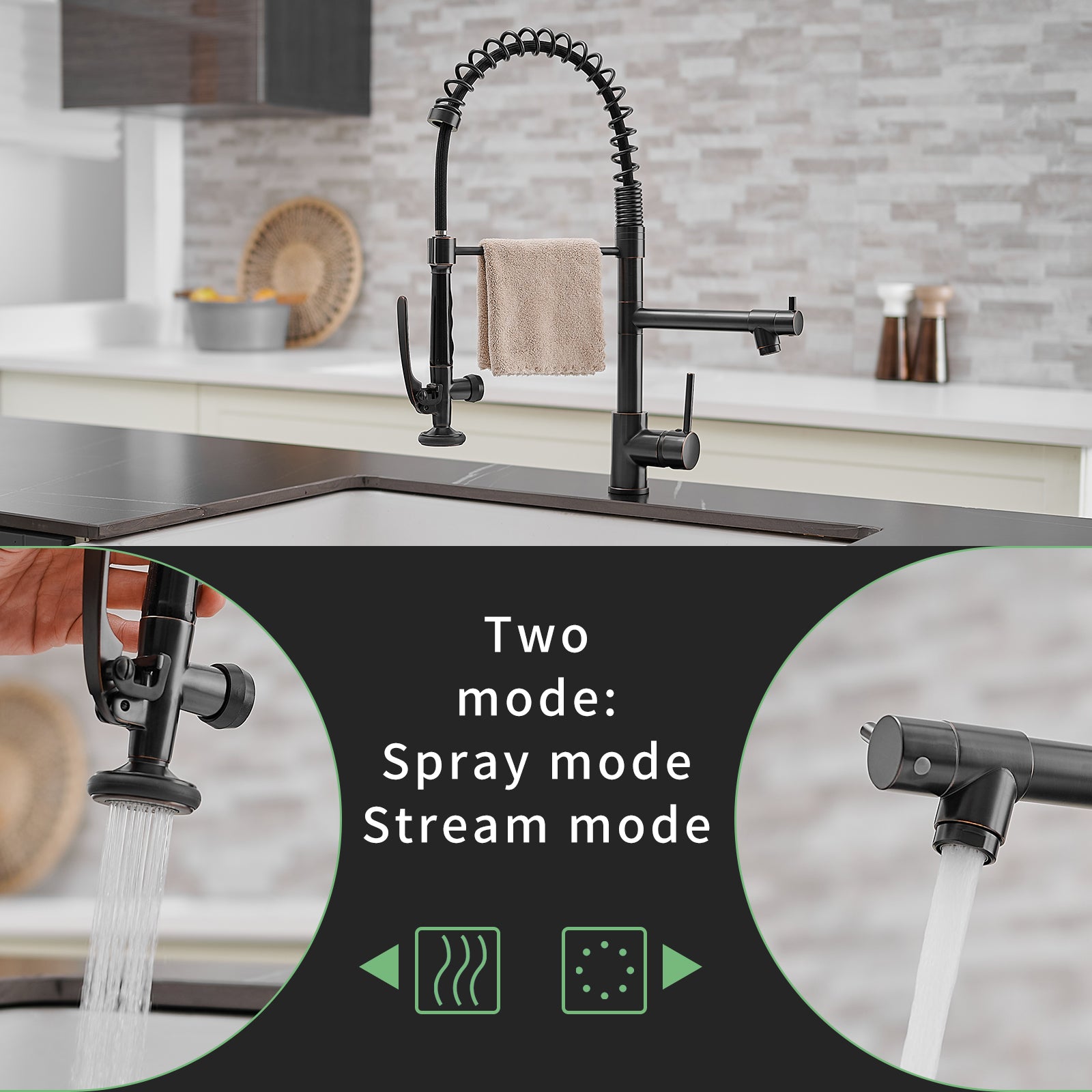 Commercial Kitchen Faucet With Pull Down Sprayer, Single Handle Single Lever Kitchen Sink Faucet Oil Rubbed Bronze Kitchen Contemporary Ceramic Brass