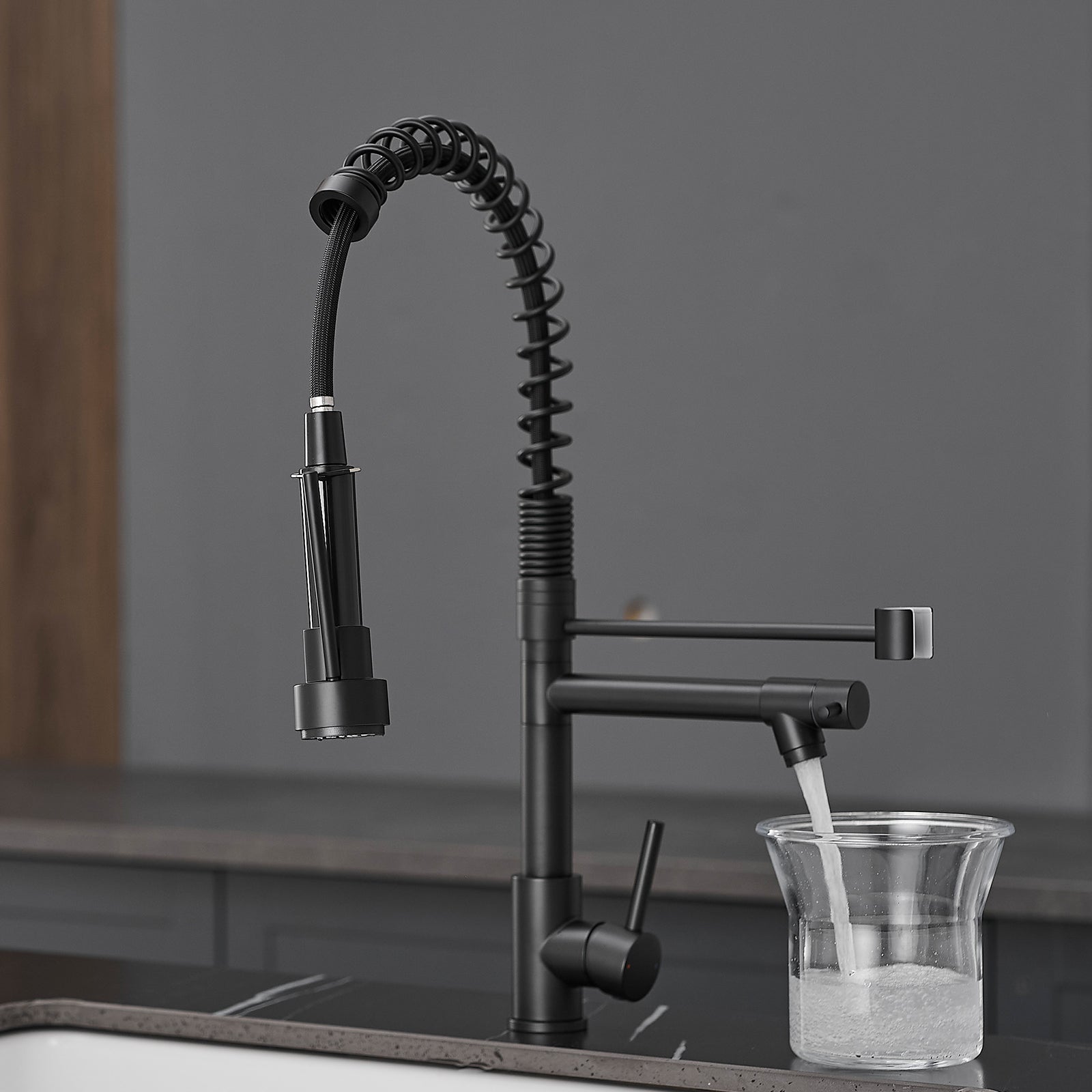 Commercial Stainless Steel Kitchen Faucet With Pull Down Sprayer, Single Handle Single Lever Kitchen Sink Faucet Black Kitchen Contemporary Ceramic Brass