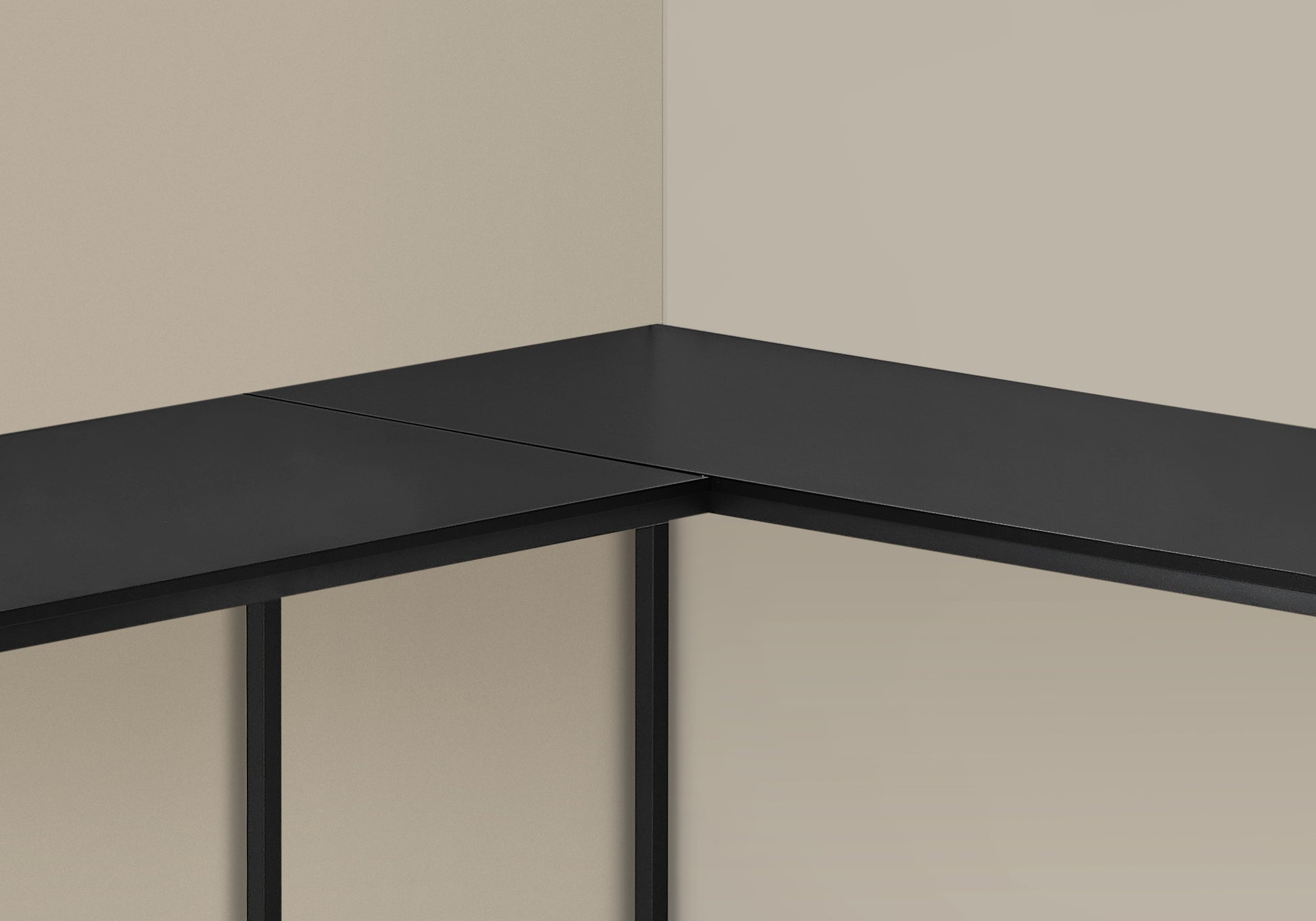 Computer Desk, Home Office, Corner, 58"L, L Shape, Work, Laptop, Black Laminate, Black Metal, Contemporary, Modern Black Particle Board