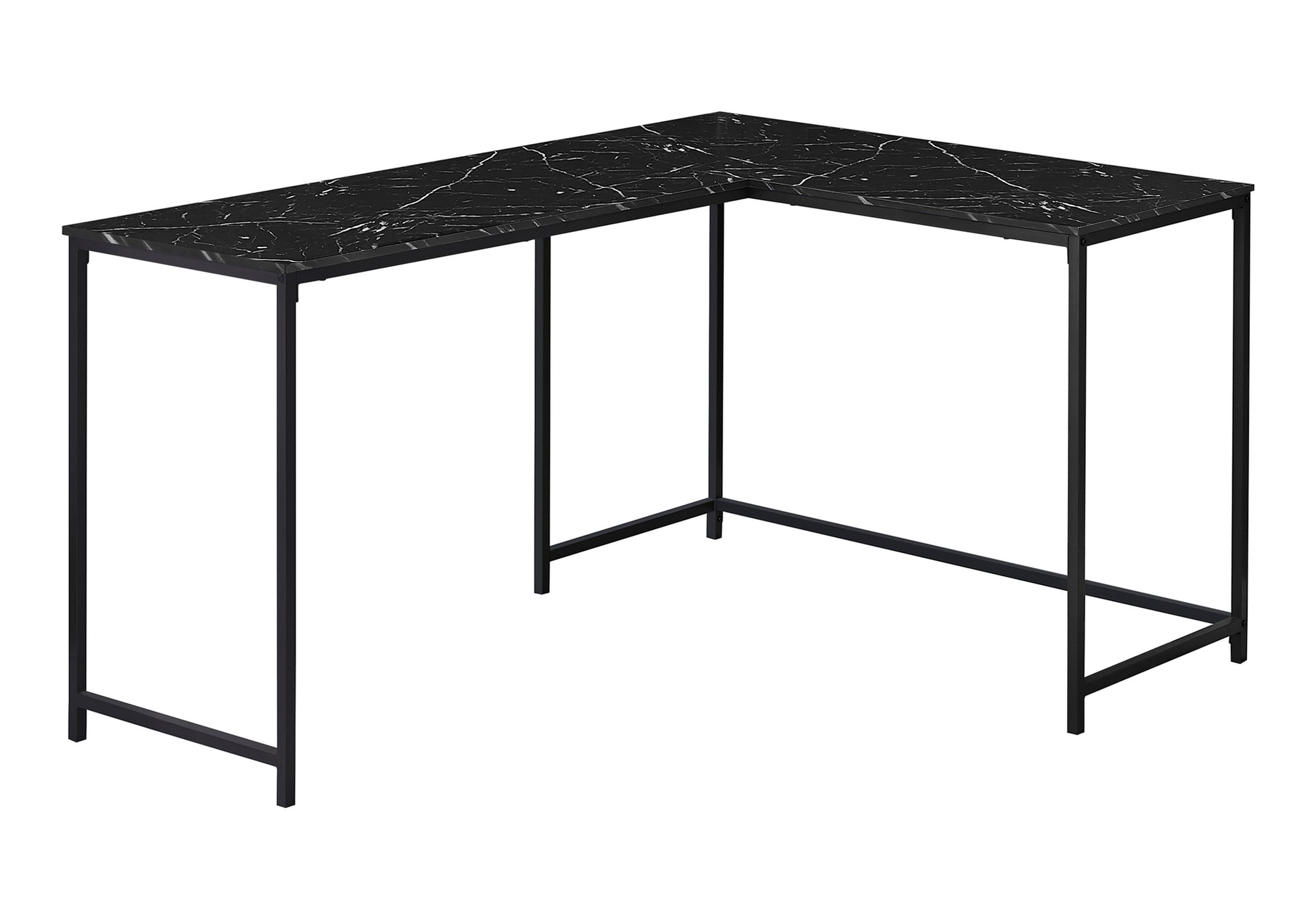 Computer Desk, Home Office, Corner, 58"L, L Shape, Work, Laptop, Black Marble Look Laminate, Black Metal, Contemporary, Modern Black Particle Board