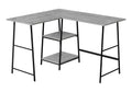 Computer Desk, Home Office, Corner, Storage Shelves, 48"L, L Shape, Work, Laptop, Grey Laminate, Black Metal, Contemporary, Modern Grey Metal