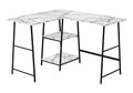 Computer Desk, Home Office, Corner, Storage Shelves, 48"L, L Shape, Work, Laptop, White Marble Look Laminate, Black Metal, Contemporary, Modern White Metal