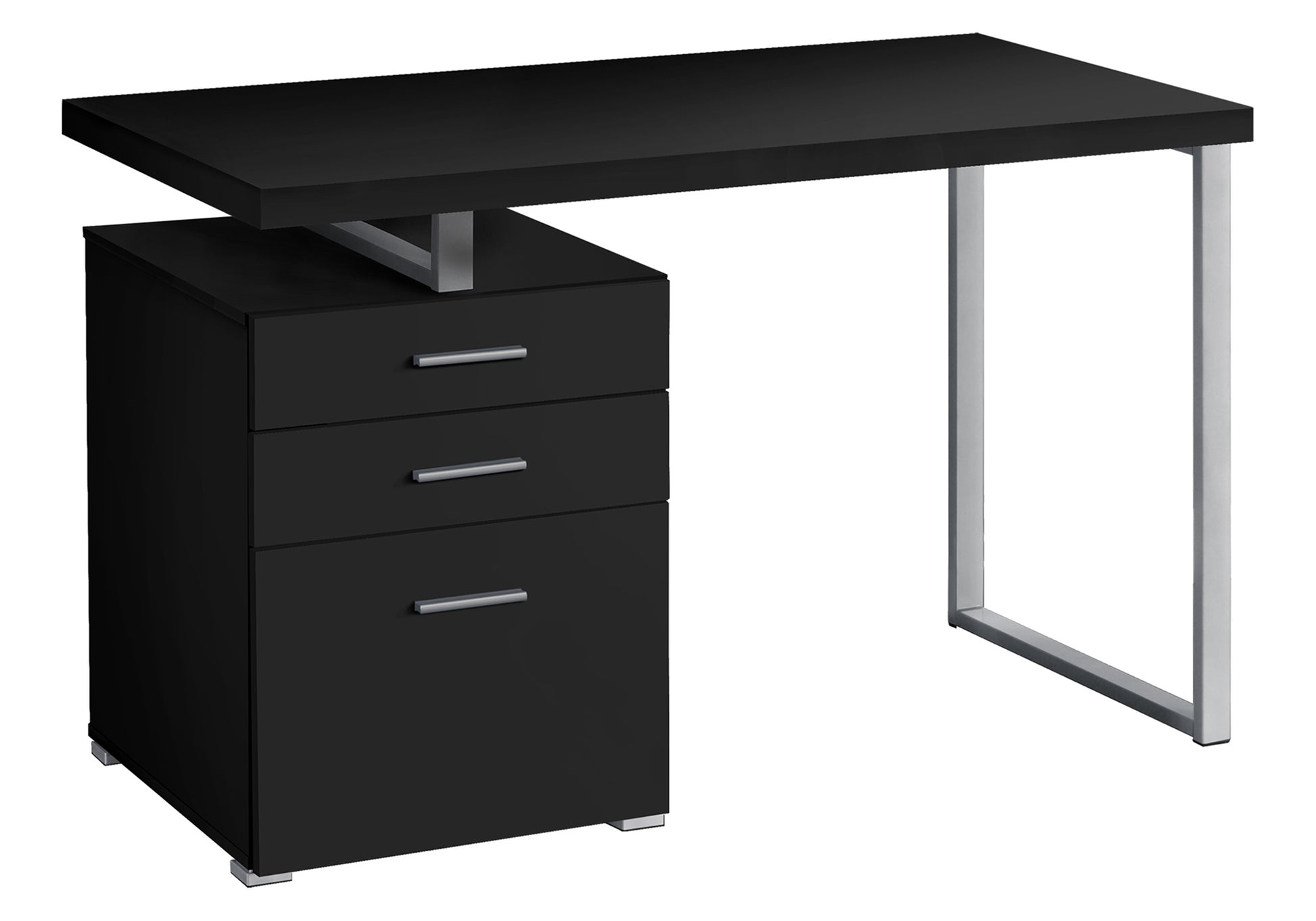 Computer Desk, Home Office, Laptop, Left, Right Set Up, Storage Drawers, 48"L, Work, Black Laminate, Grey Metal, Contemporary, Modern Black Particle Board
