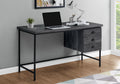 Computer Desk, Home Office, Laptop, Storage Drawers, 55"L, Work, Black Laminate, Black Metal, Contemporary, Modern Black Particle Board