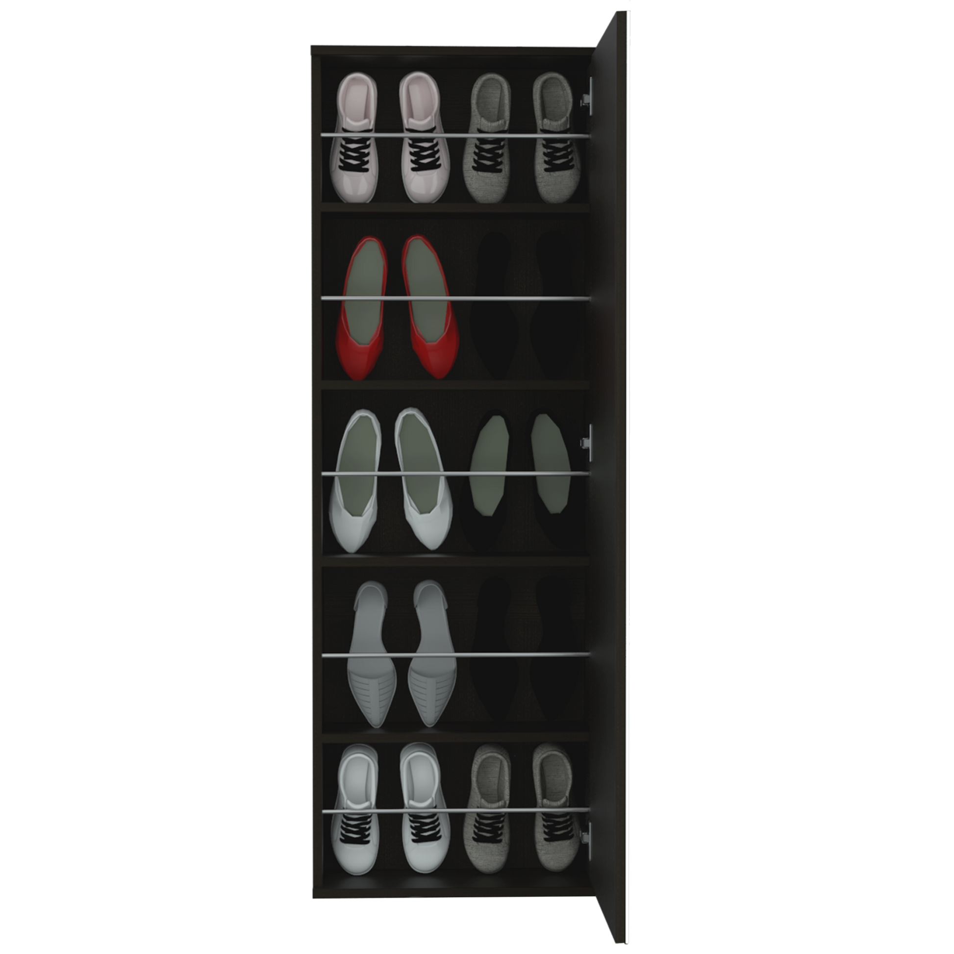 Connecticut Wall Mounted Shoe Rack, Mirror, Five Shelves, Ten Shoes Capacity Black Mdf Engineered Wood