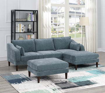 Contemporary 5Pcs Modular Sectional Set One Arm Chairs Armless Chair Ottoman L Shaped Sectional Mineral Morgan Fabric Grayish Primary Living Space Cushion Back Classic,Contemporary,Modern Modular