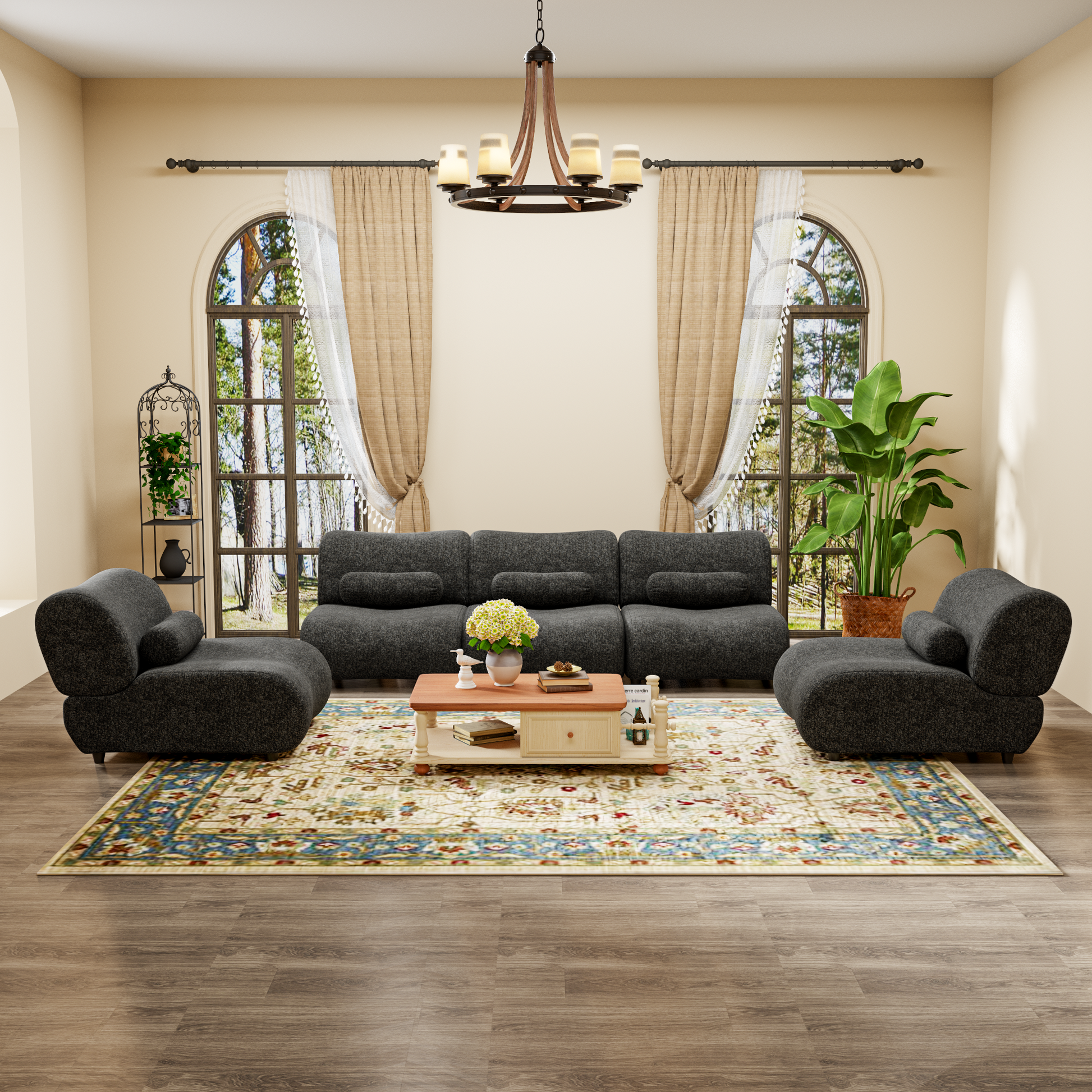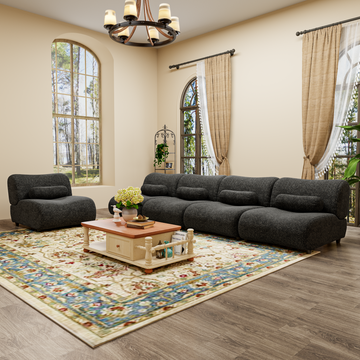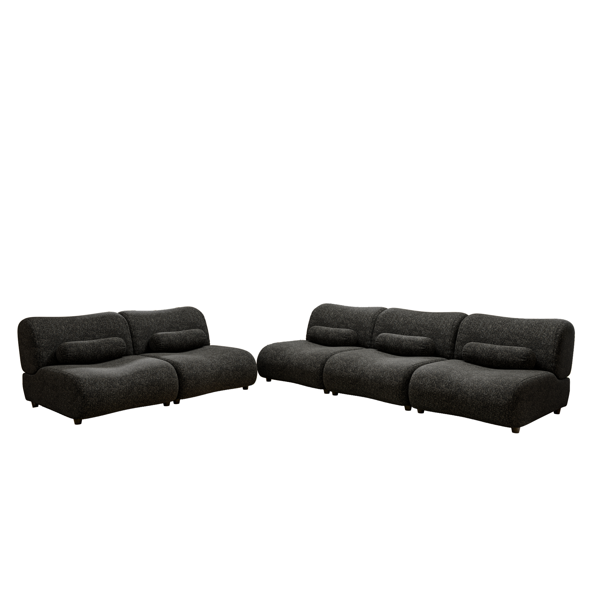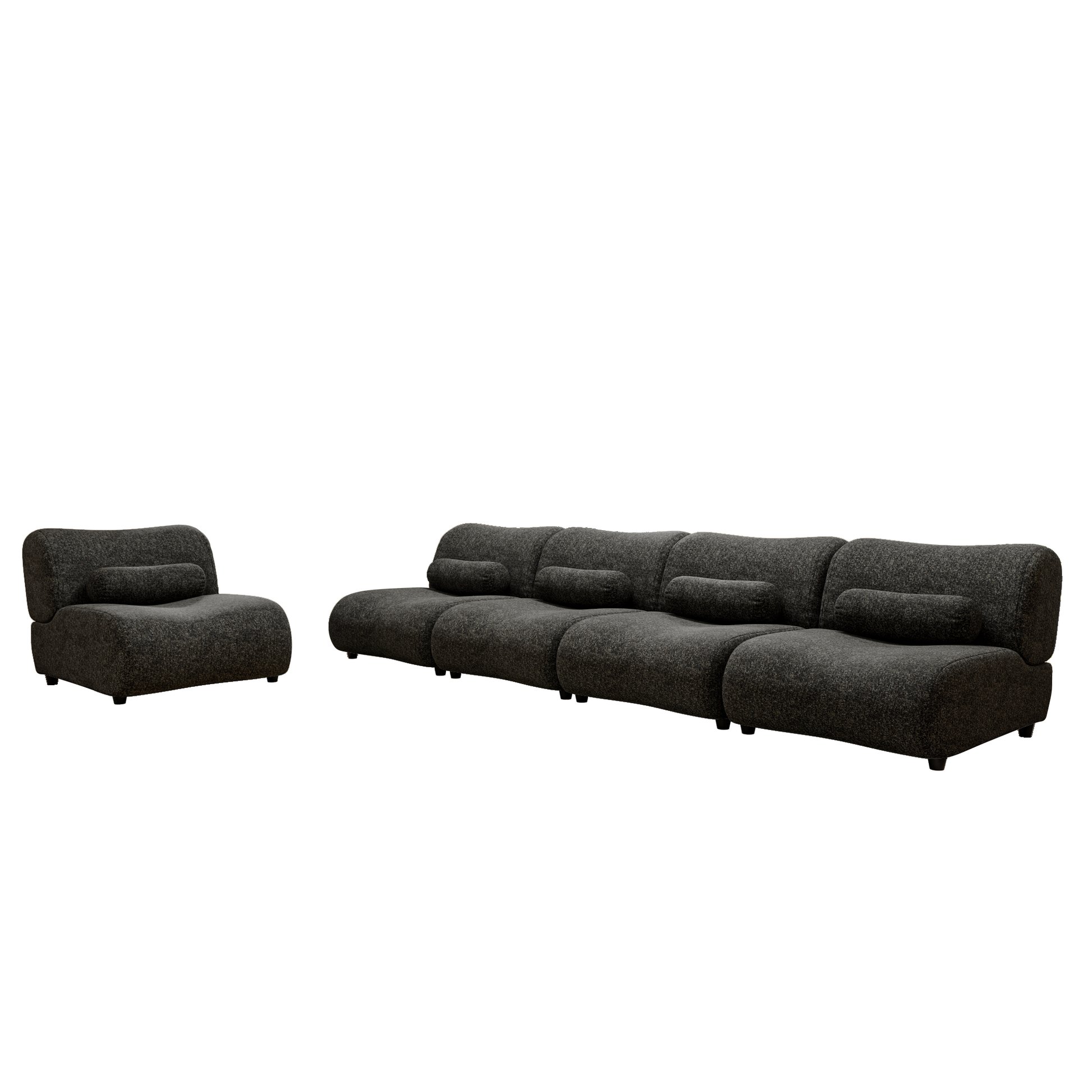Contemporary Black Modular Sofa With Chenille Fabric Spacious 5 Seat Sectional Couch With Deep Seating & Reclined Backrest Ideal For Family Rooms Black Chenille 5 Seat