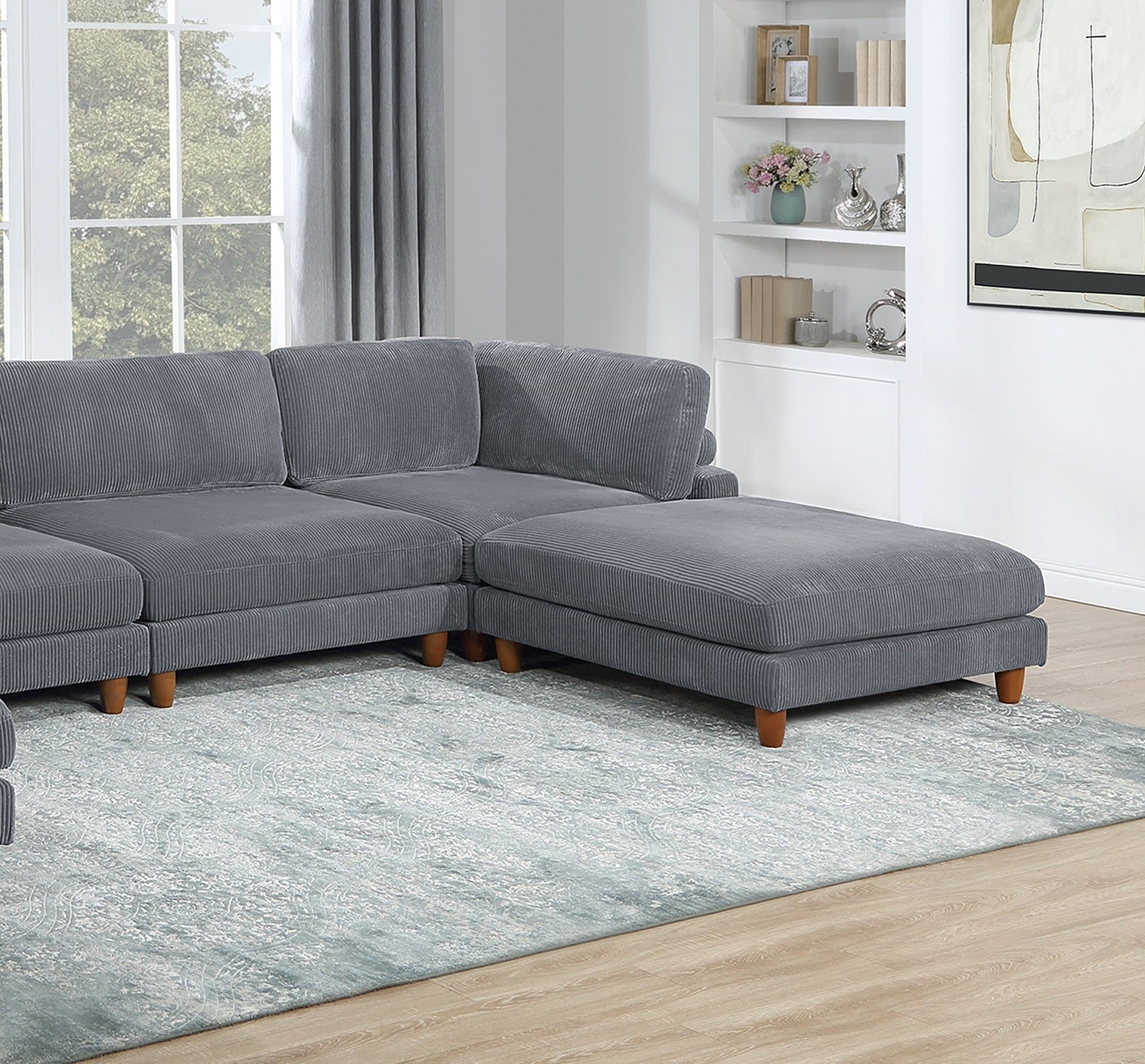 Contemporary Dark Gray 6Pc Modular Sectional Set Corduroy Upholstery Couch 2X Corner Wedge, 2X Armless Chairs 2X Ottomans Living Room Dark Gray Primary Living Space Cushion Back Contemporary,Modern Modular Rubberwood Corduroy 6 Seat