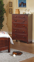 Contemporary Dark Oak Finish 1Pc Chest Of Drawers Plywood Pine Veneer Bedroom Furniture 5 Drawers Tall Chest Brown Mix Brown Bedroom Modern,Transitional Pine Plywood