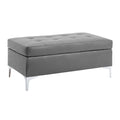 Contemporary Gray Tufted Top 1Pc Ottoman Faux Leather Upholstered Solid Wood Frame Living Room Furniture Silver Metal Legs Gray Wood Primary Living Space Grey Contemporary Rectangle Solid Wood