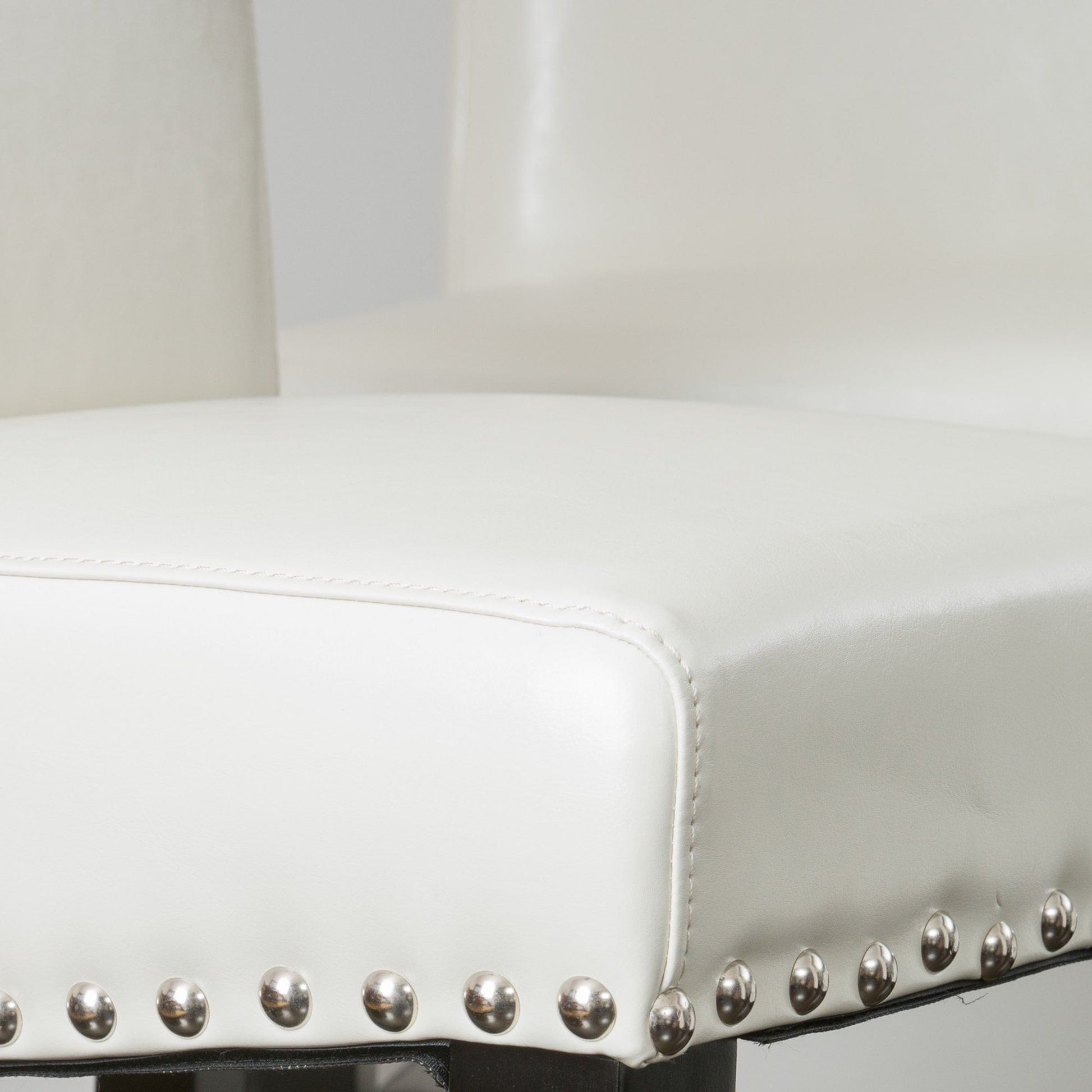 Contemporary Leather Counter Stools,Ivory Dining Chairs With Nail Head Decoration Set Of 2 ,25 Inches Upholstered Dining Chairs Suitable For Kitchen Bedroom Dining Room. Oak Wood Ivory Black Kitchen
