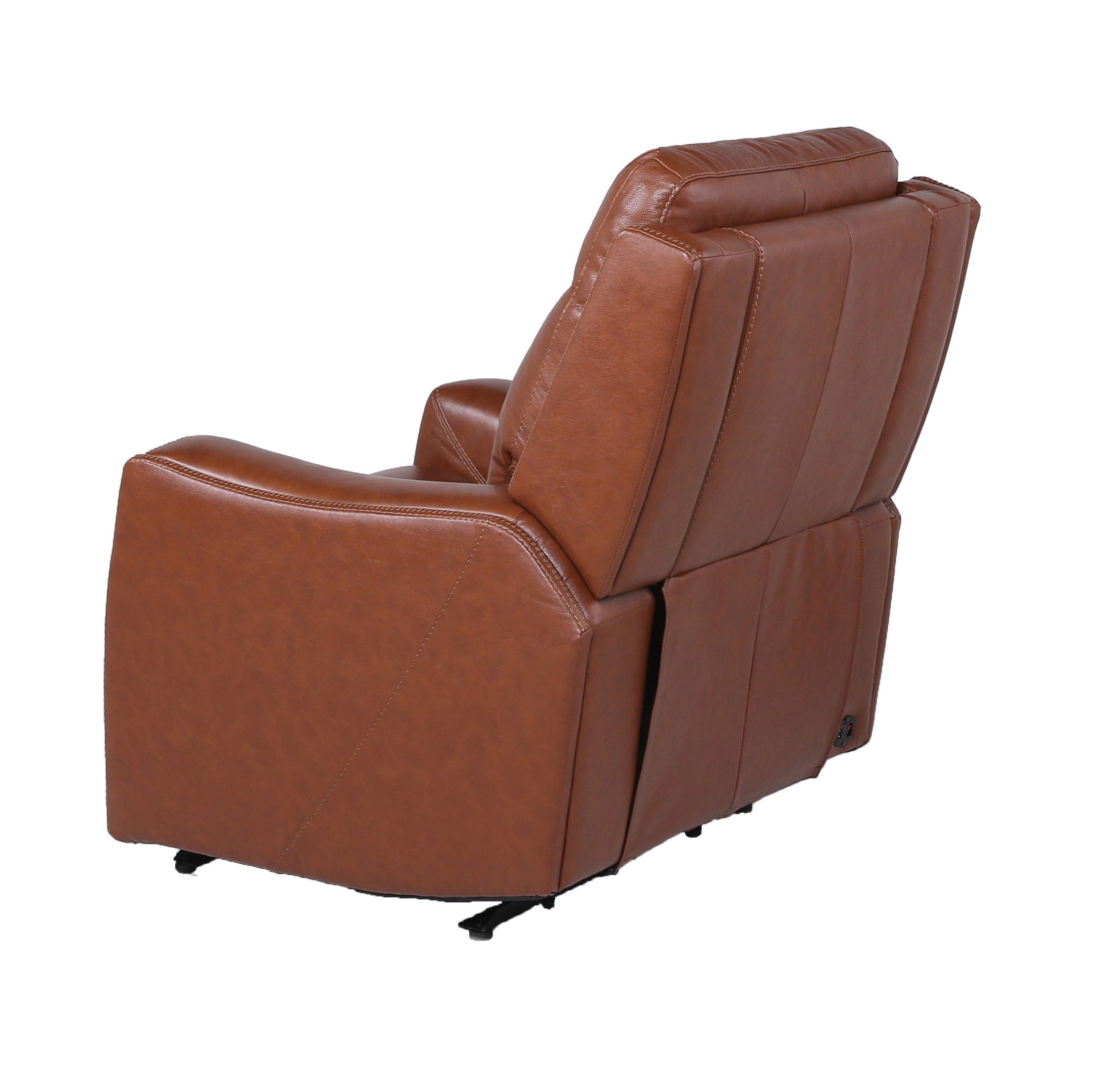 Contemporary Leather Recliner Top Grain Seating, Power Headrest, Power Footrest, Usb Charging Brown Foam Leather