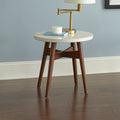 Contemporary Mid Century Accent Tables Natural Cherry Legs, White Silverstone Tops Classic Design With Modern Simplicity Cherry Solid Wood Mdf