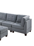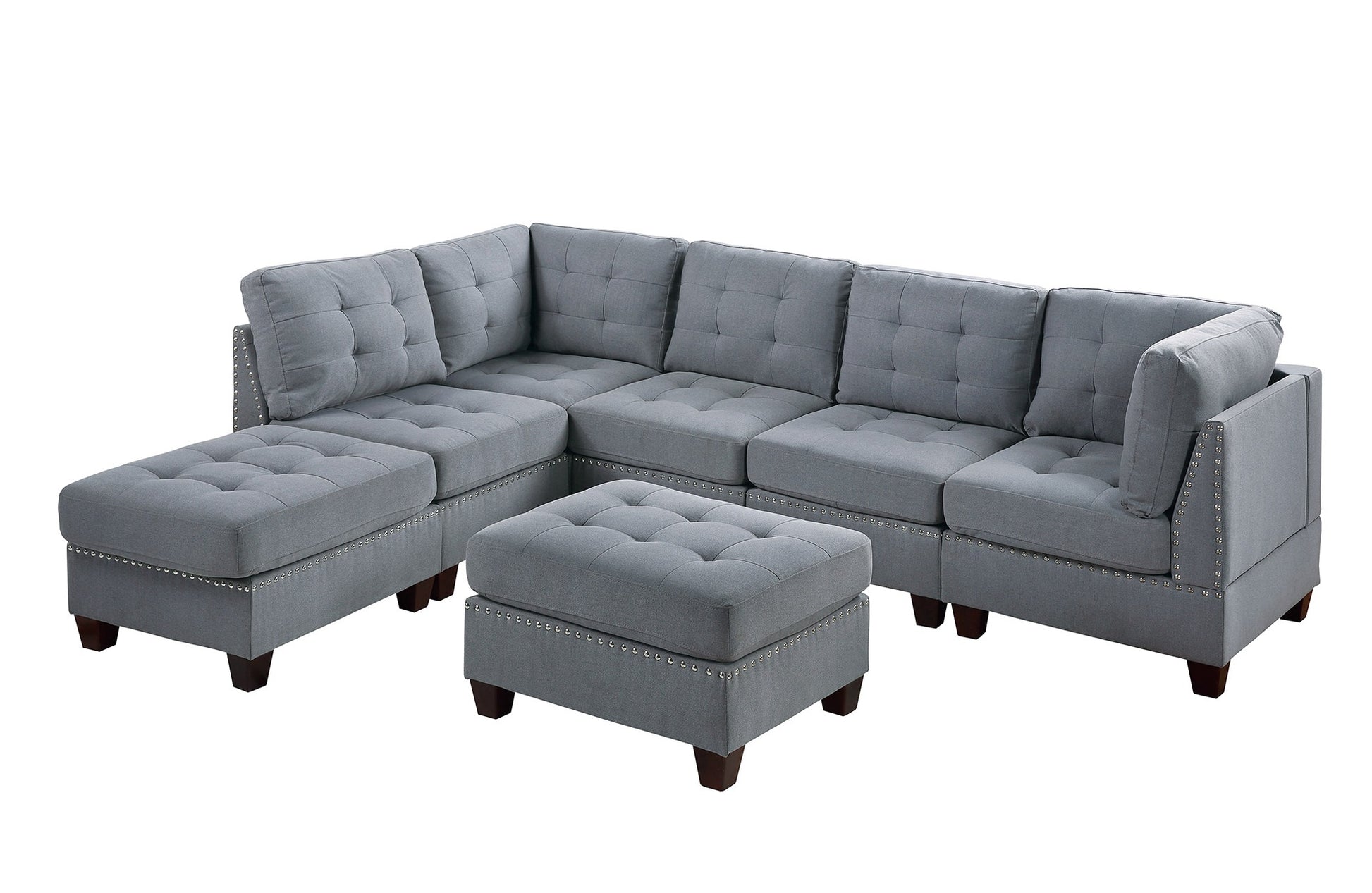 Contemporary Modular Sectional 7Pc Set Living Room Furniture Corner L Sectional Gray Linen Like Fabric Tufted Nail Heads 2X Corner Wedge 3X Armless Chair And 2X Ottoman Gray Linen Primary Living Space Tufted Back Contemporary,Modern Modular Fabric 7 Seat
