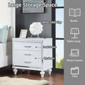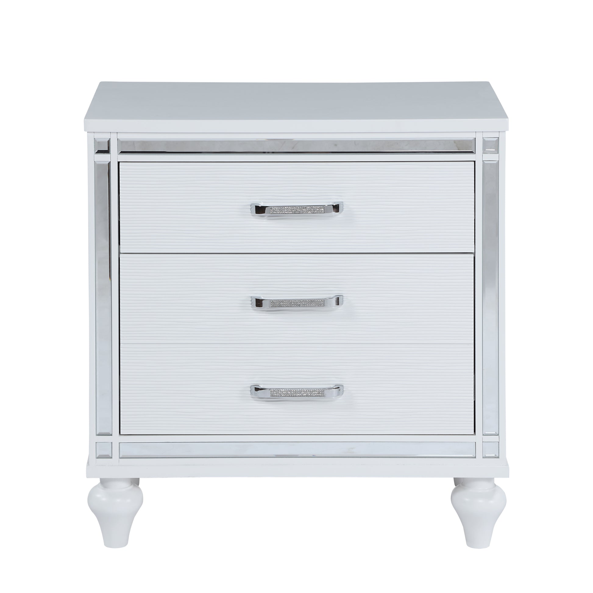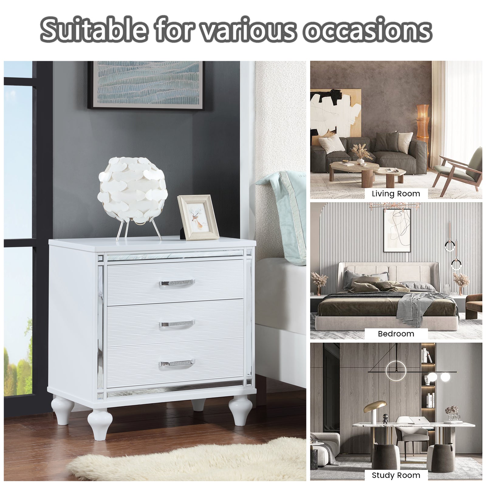Contemporary Nightstands With Mirror Frame Accents, Bedside Table With Two Drawers And One Hidden Drawer, End Table With Crystal Pull For Living Room,Bedroom, White White 3 Drawers Solid Wood Mdf
