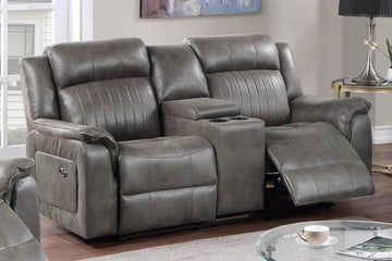 Contemporary Power Motion Loveseat W Console 1Pc Couch Living Room Furniture Slate Blue Blue Grey Faux Leather Primary Living Space Cushion Back Contemporary,Modern Pillow Top Arms Faux Leather
